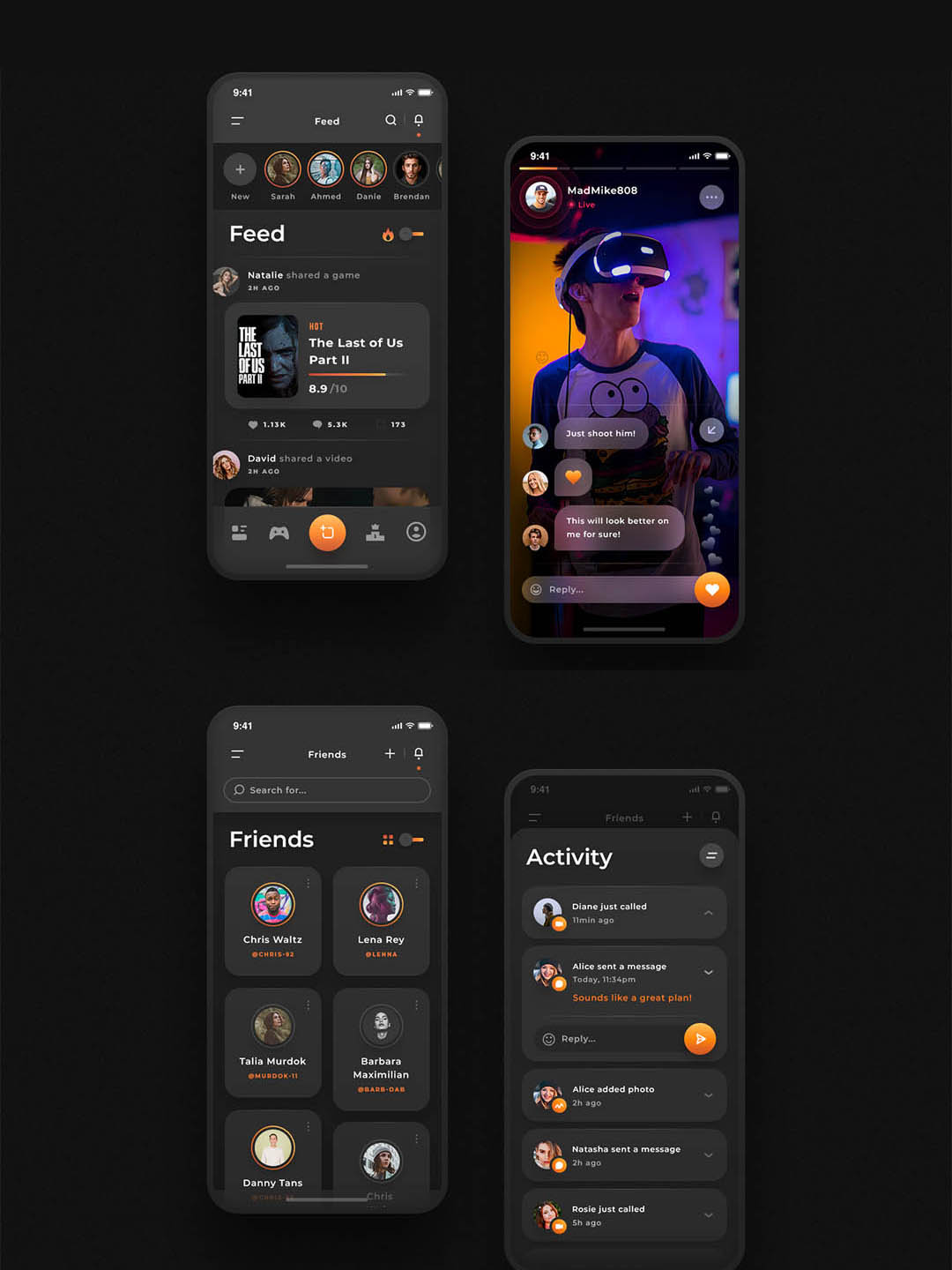 42页明暗游戏社交,电竞app设计原型UI素材xd、psd源文件