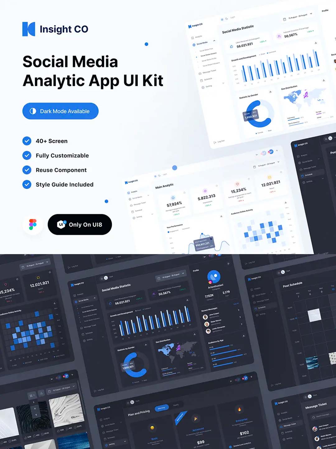 B端后台管理仪表盘dashboard,社交媒体数据分析后台管理面板B端UI资源Figma素材下载
