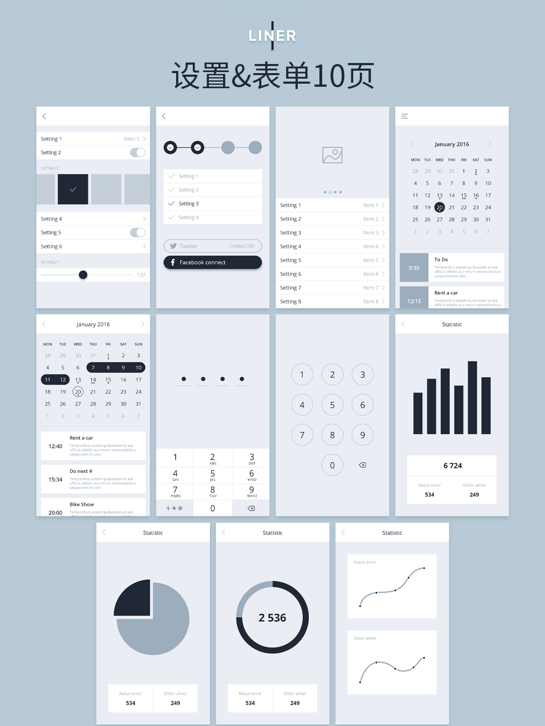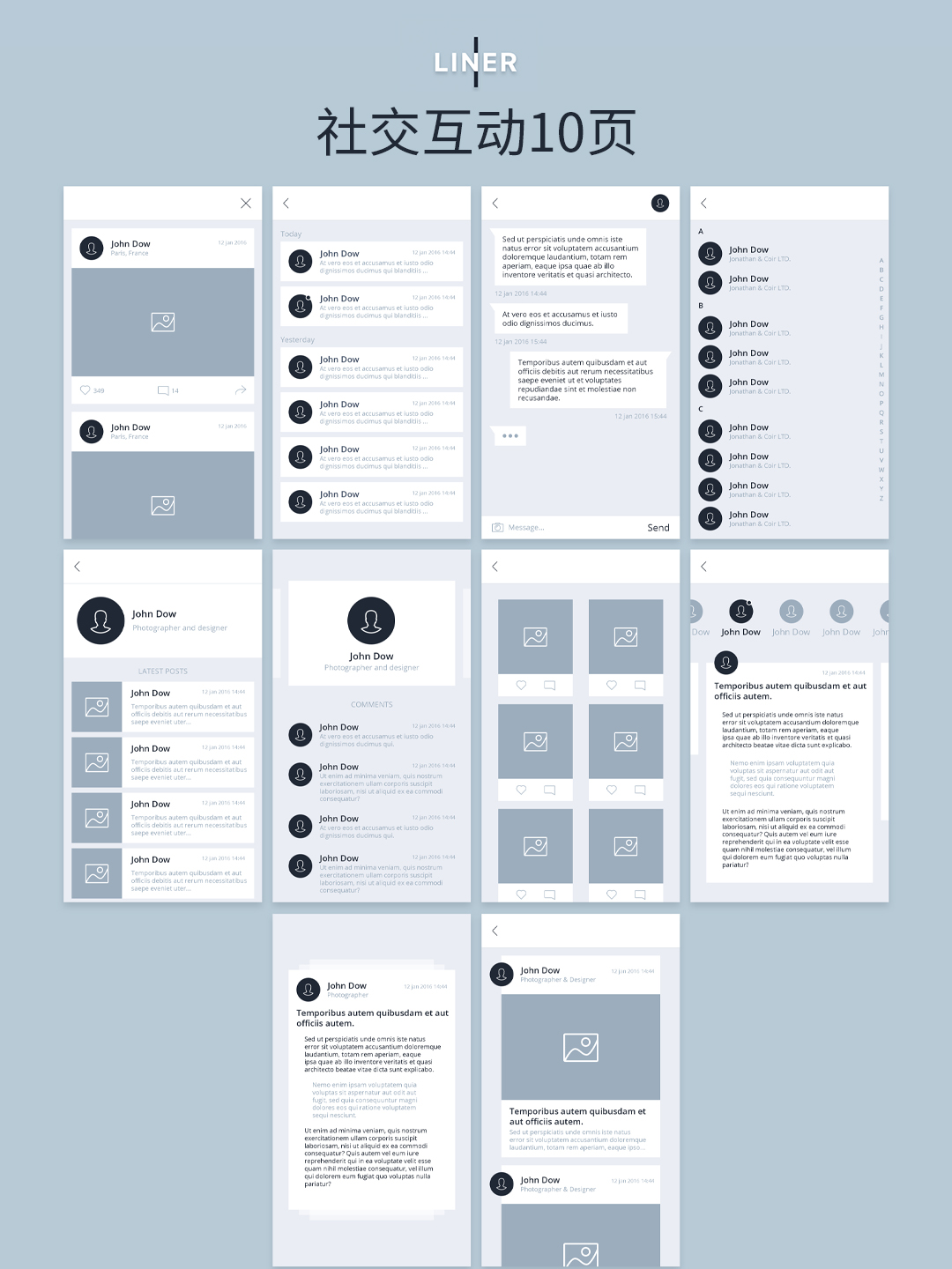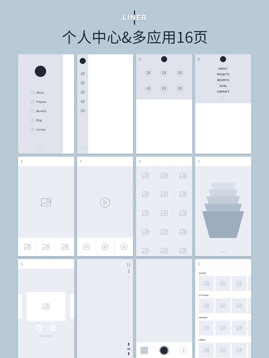 APP高保真原型图,共85个页面,10大类别,含登录注册、产品、数据表单、个人中心、菜单、社交互动等!
