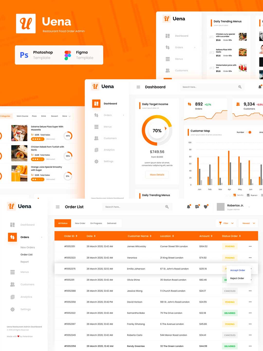 简约B端UI界面设计之在线食品配送管理后台仪表盘设计模板UI资源fig,sketch,xd UI素材