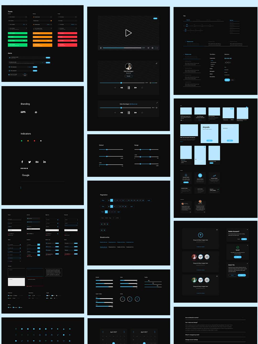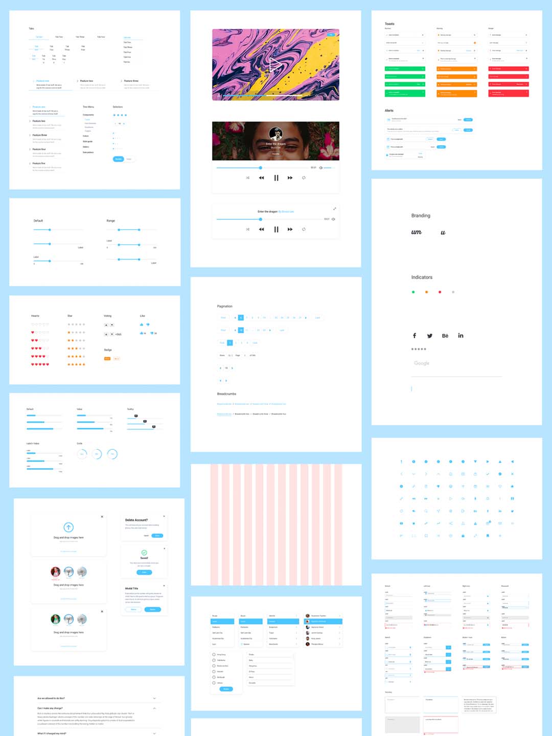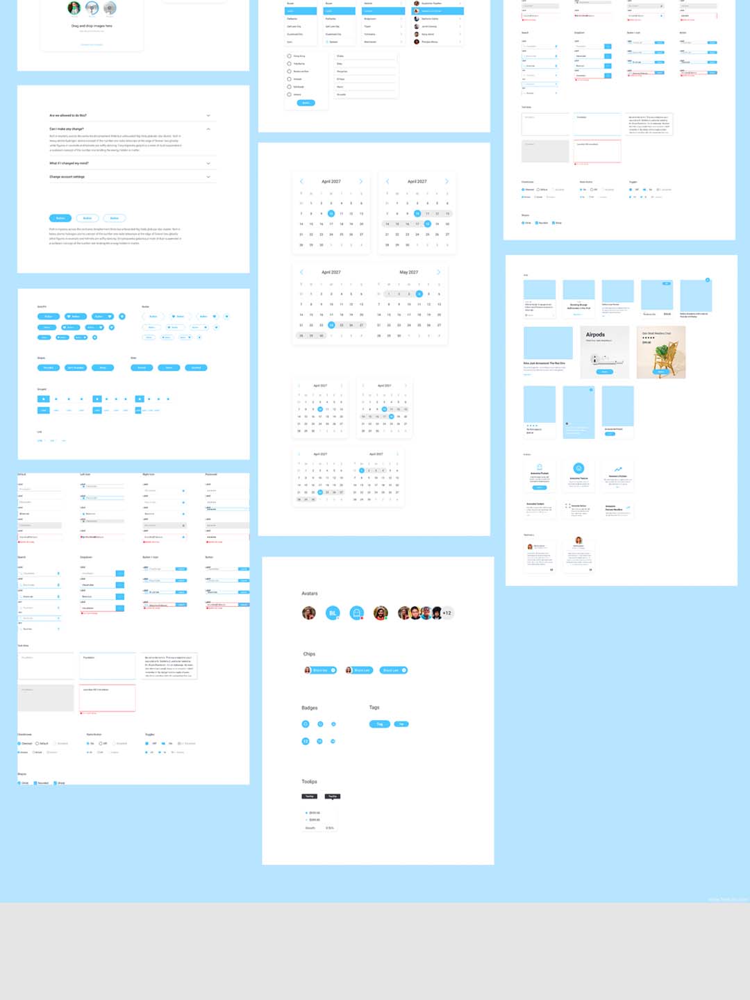 简约蓝色风格B端UI资源下载,dashboard UI素材sketch源文件