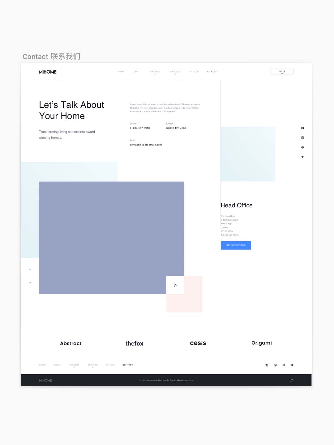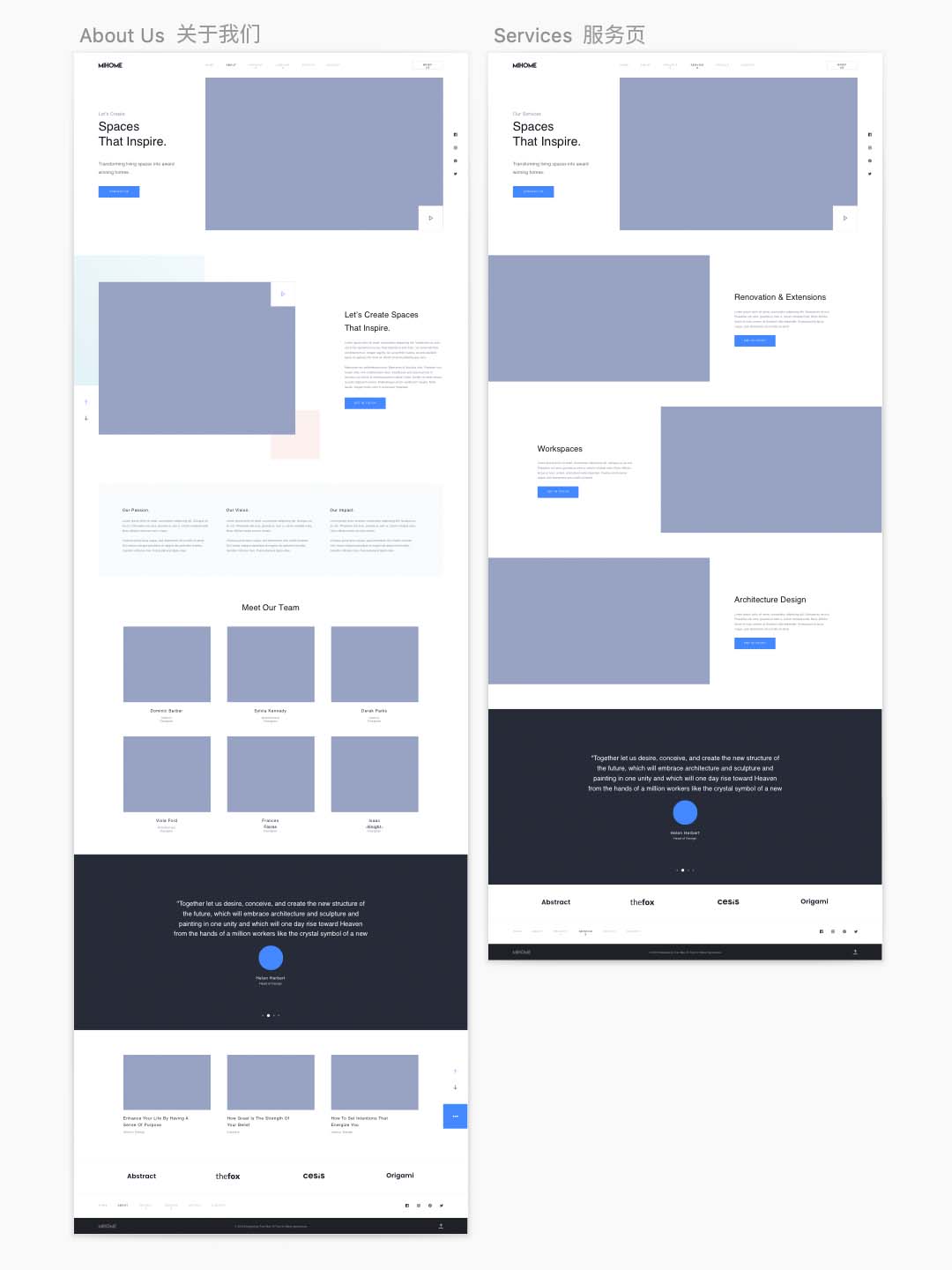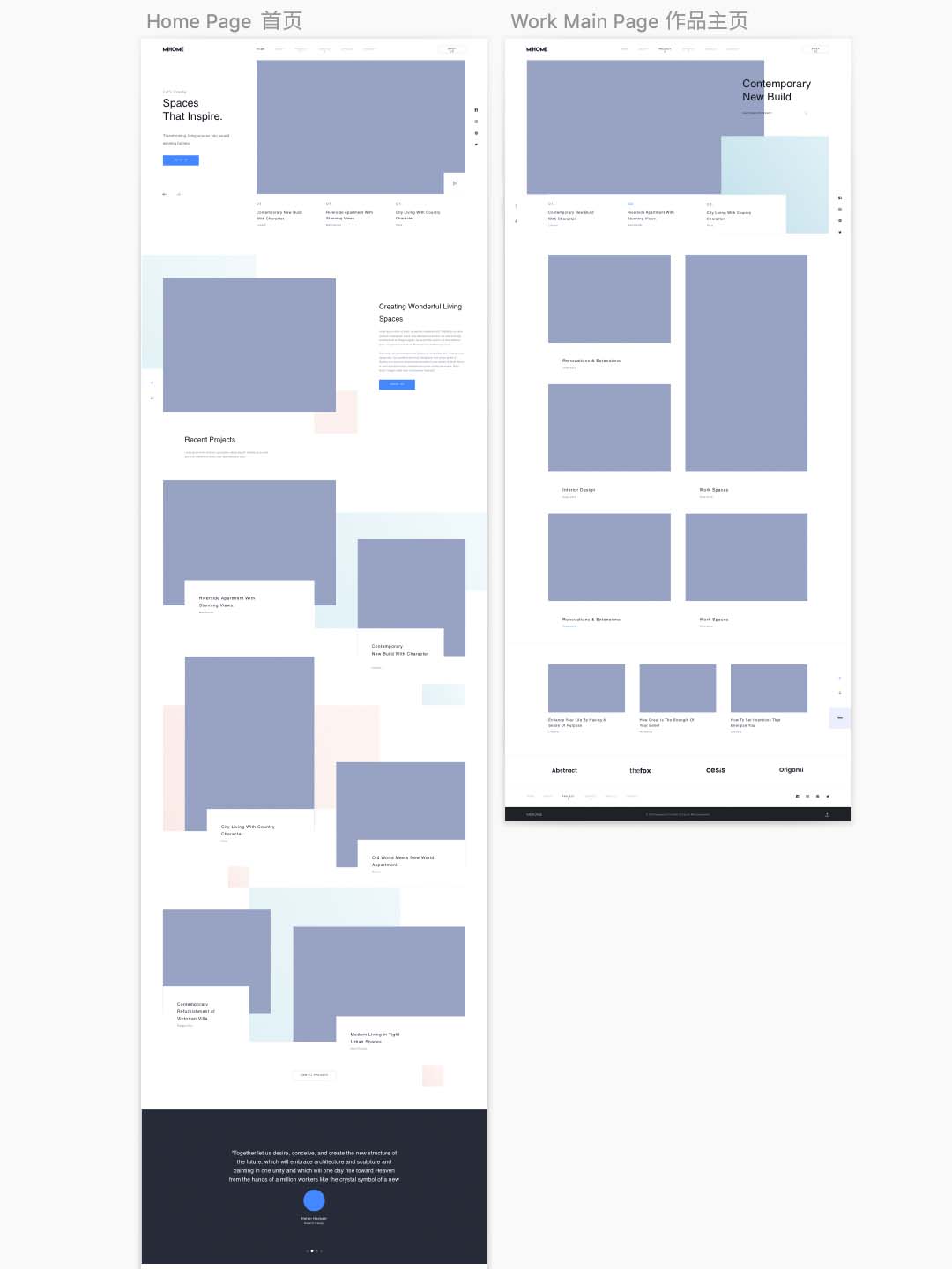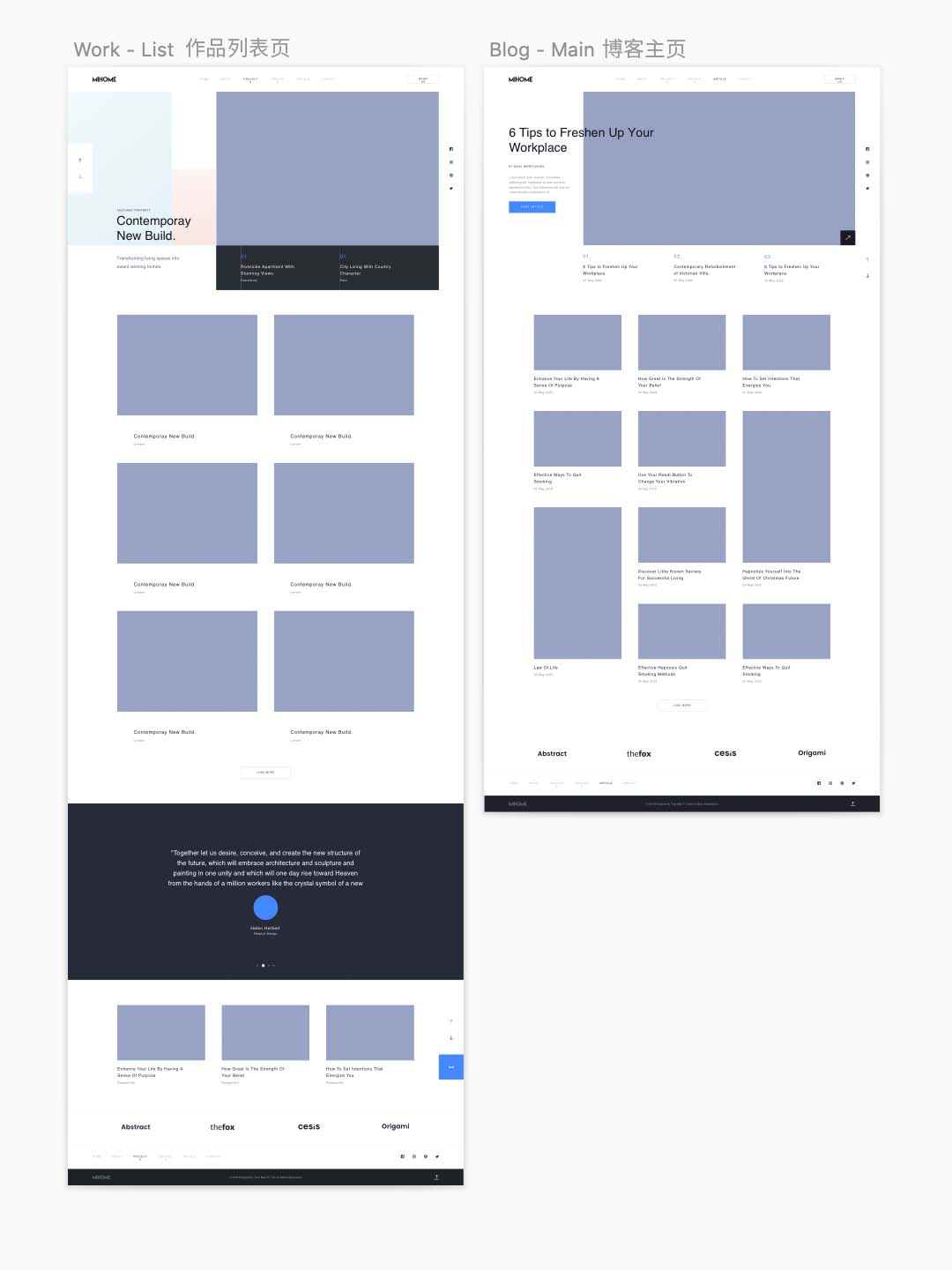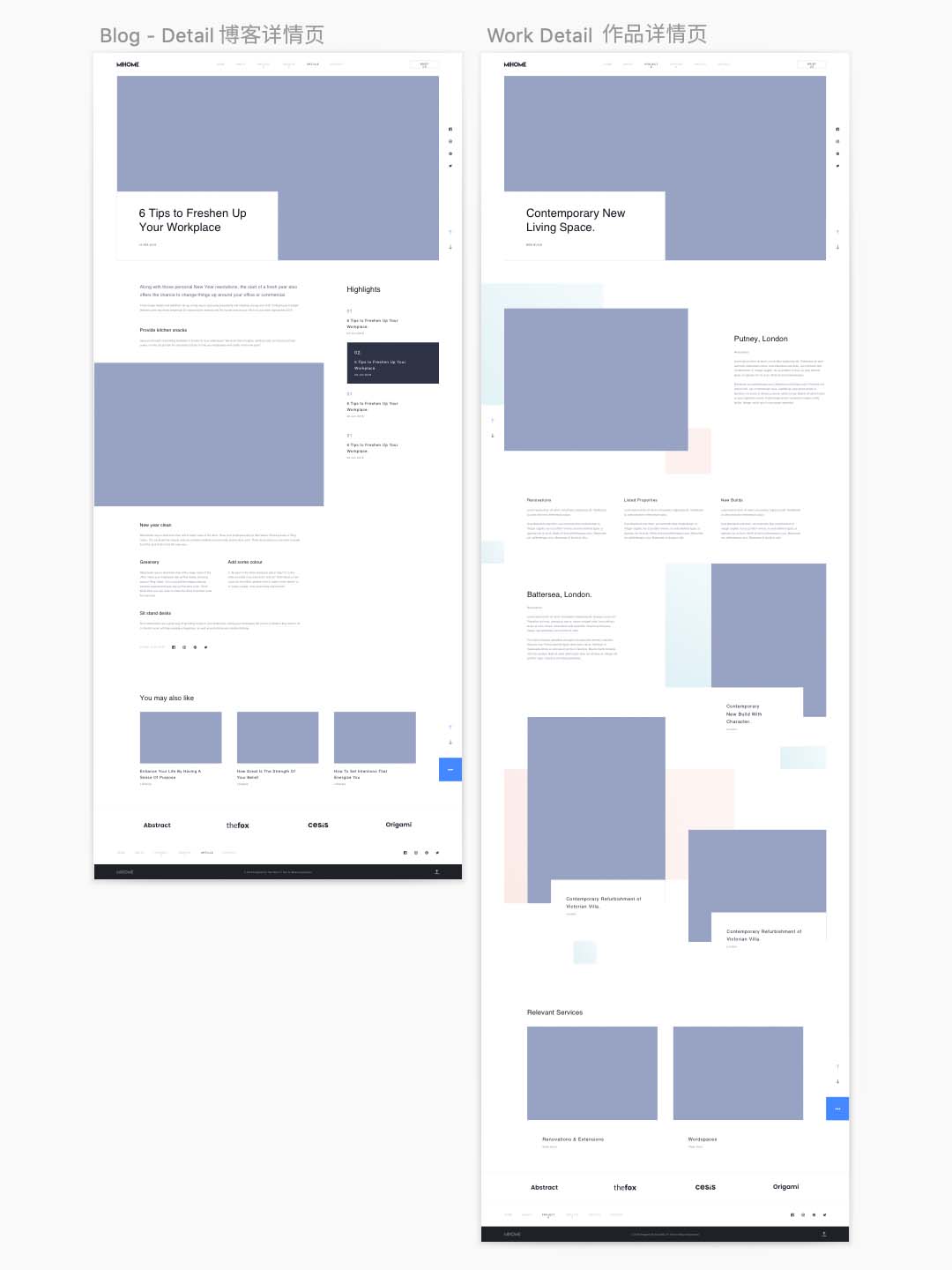 一整套漂亮的高保真网站sketch源文件,包含主页,作品页,作品详情,博客页,博客详情,联系,关于我们等页面设计