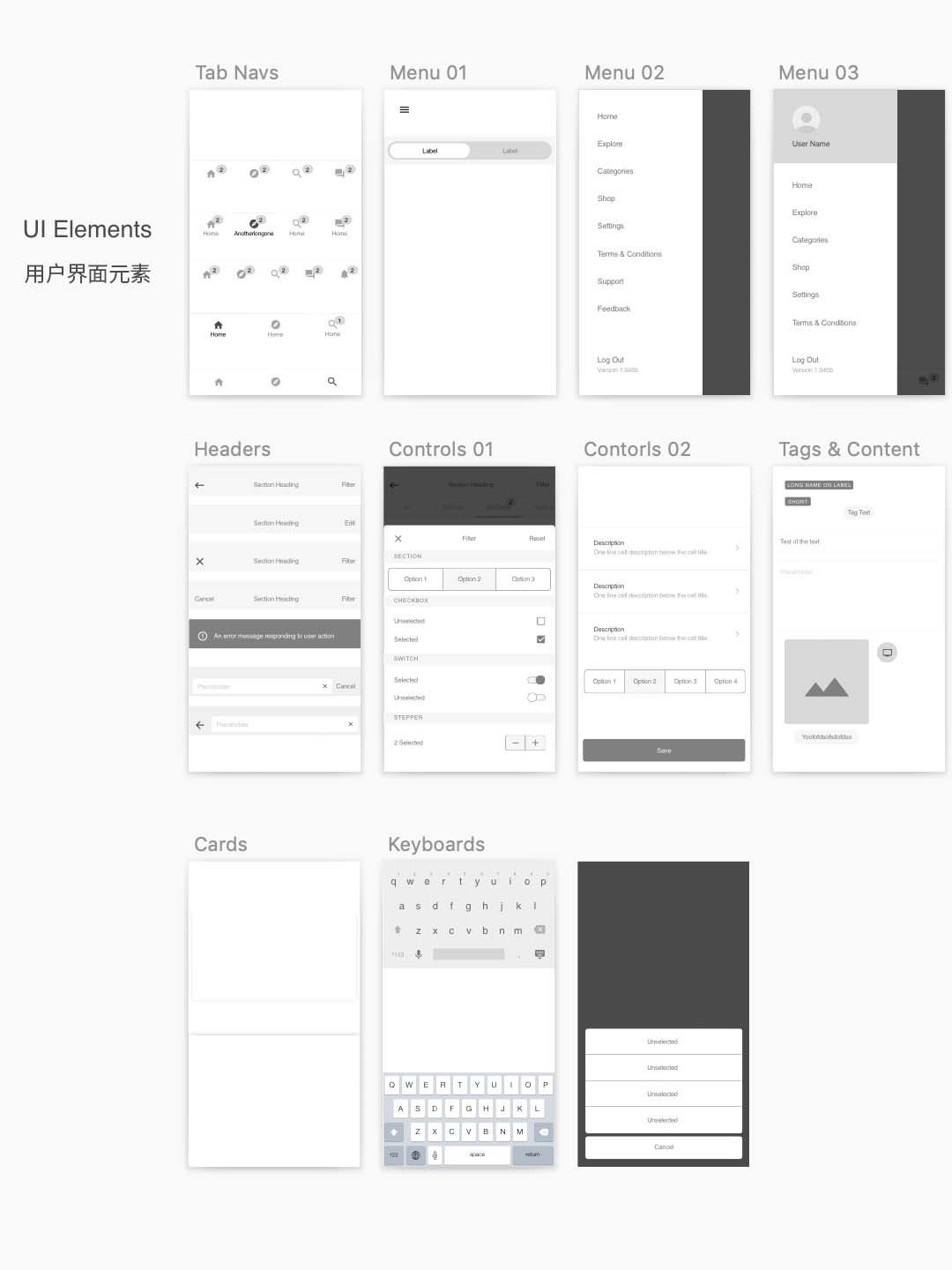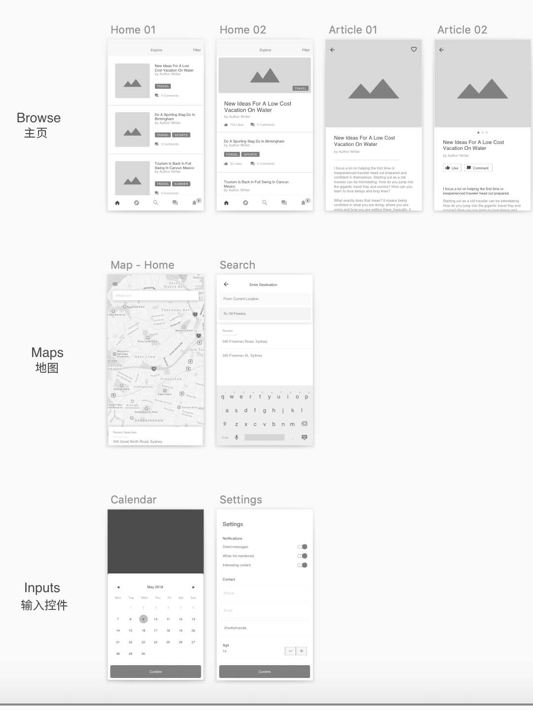 一整套用户界面sketch源文件,APP原型,登陆页,简介,输入组件,搜索元素,地图,数据图,购物等线框元素