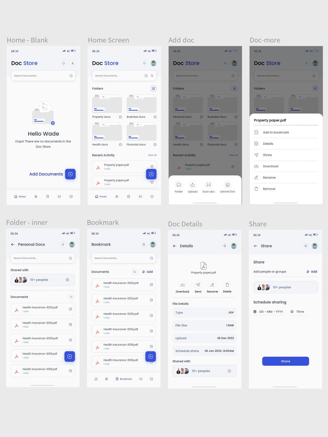 一套云网盘App UI设计+线框图+原型图格式:figma,xd,sketch