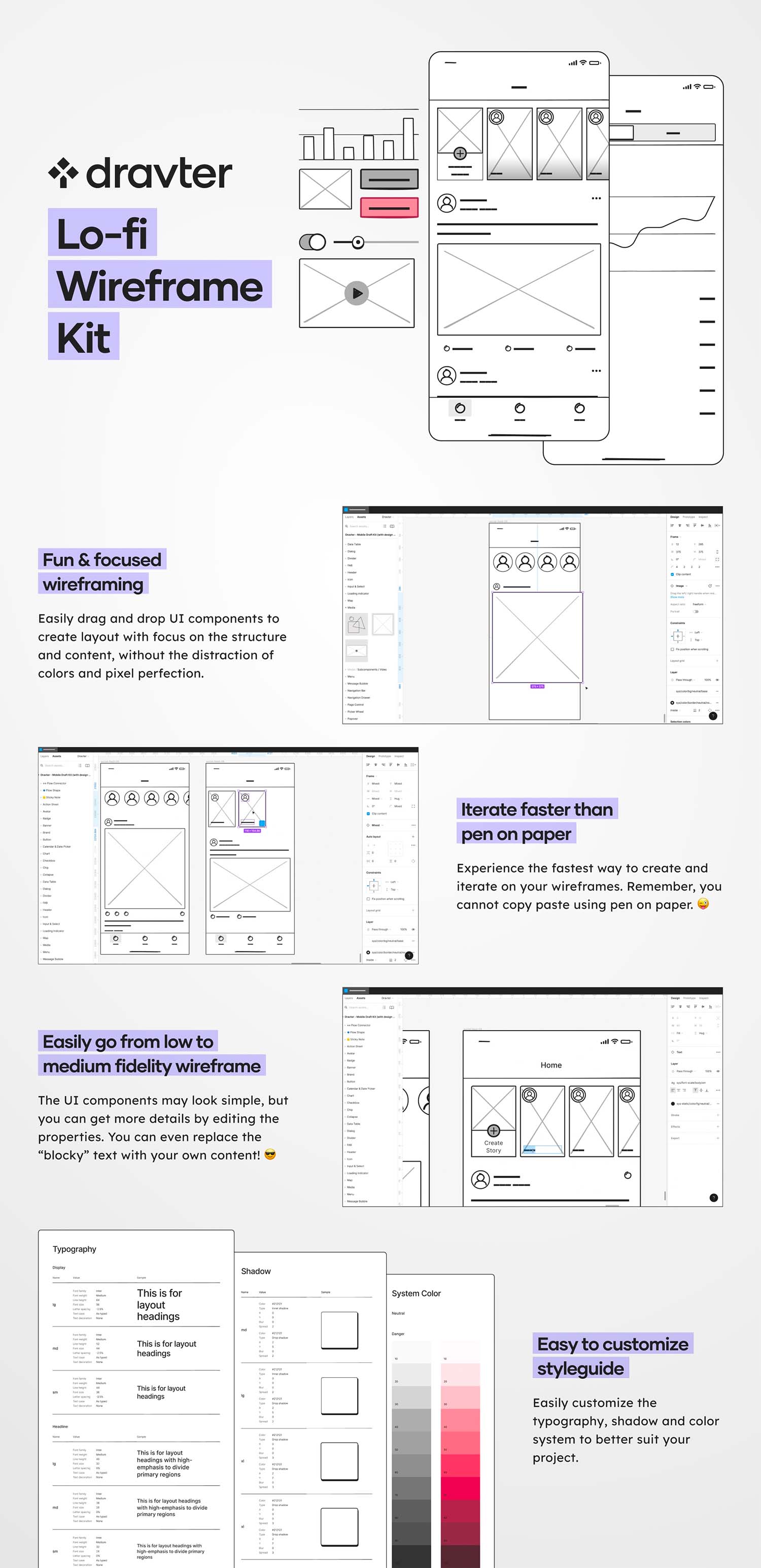 易于自定义样式指南。轻松定制排版,阴影和颜色系统,以更好地适合您的项目。
