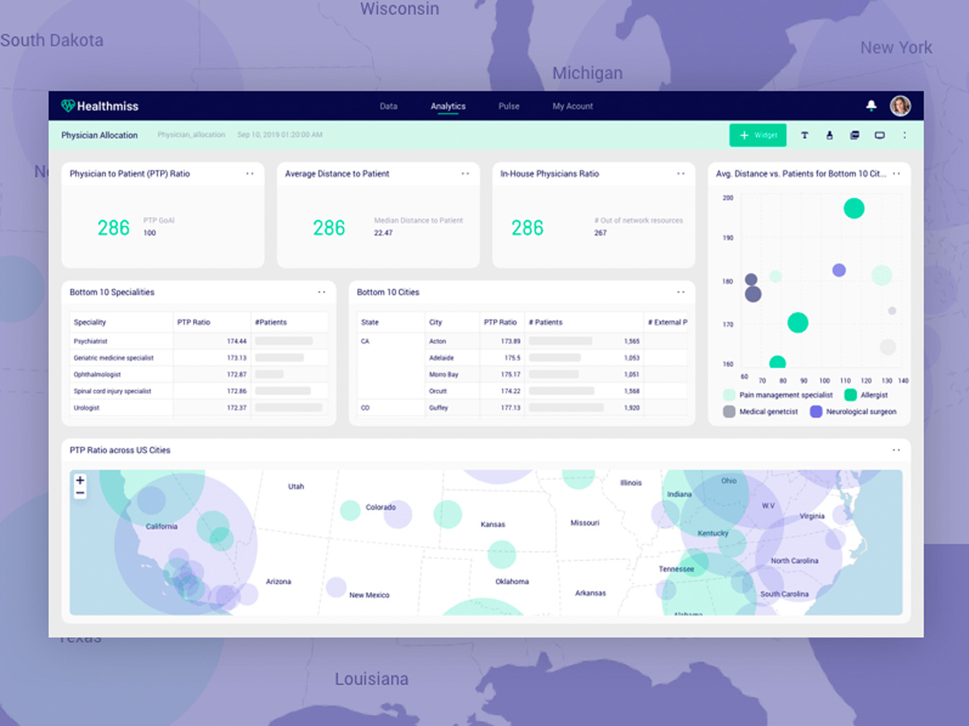 医院绩效仪表板设计系统的演示屏幕。如果您正在为医院或分析相关项目设计屏幕,请考虑购买完整的UI工具包。