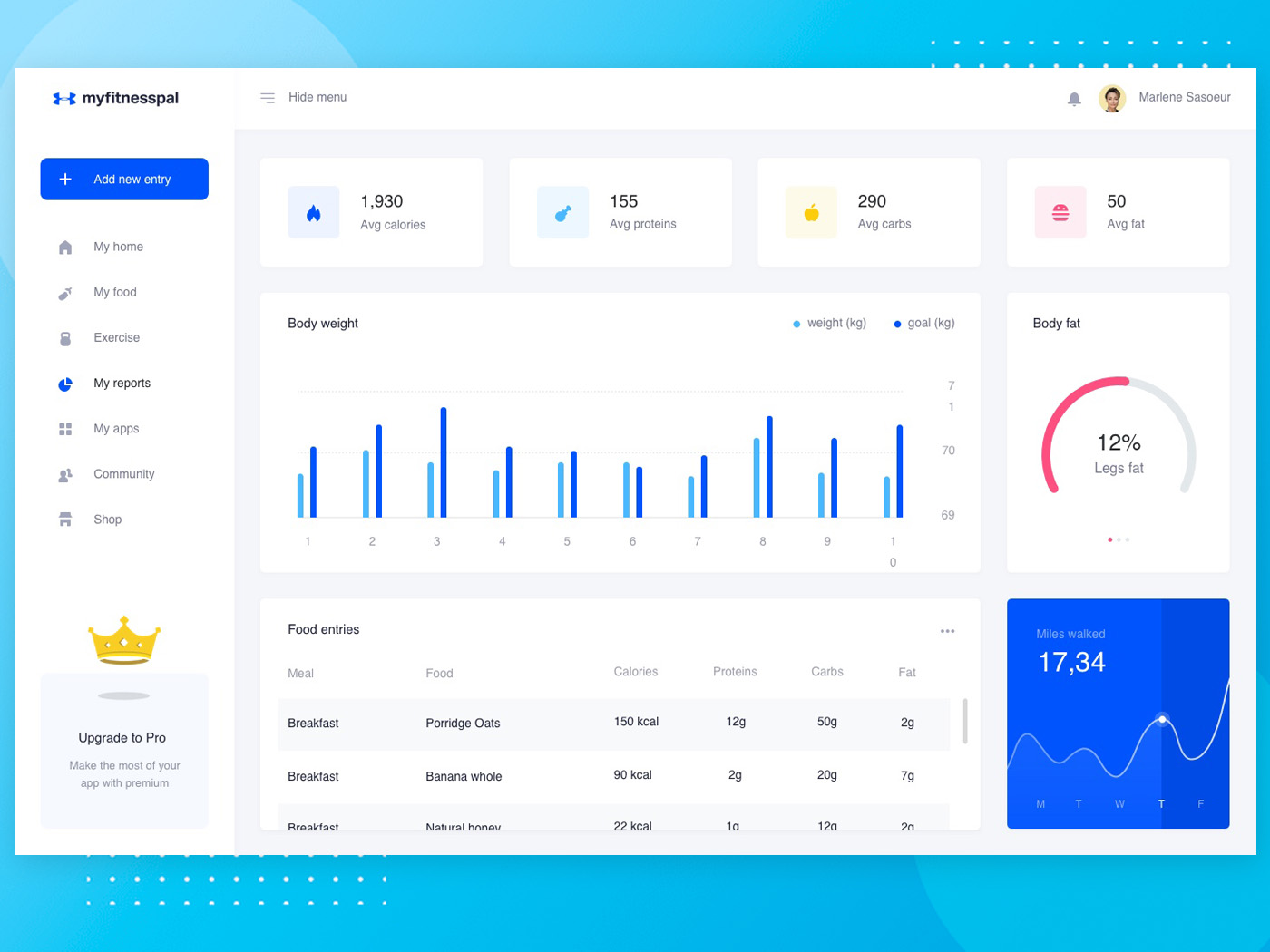20页B端客户建康饮食管理后台仪表板UI设计figma源文件