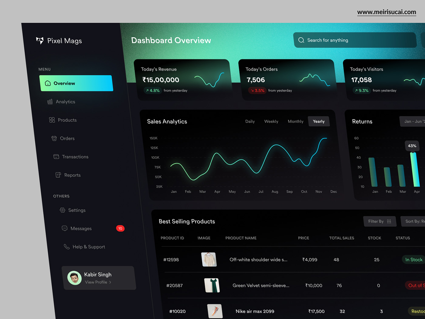 音乐类网站后台管理UI页面源文件下载,精品后台管理dashboard UI psd源文件