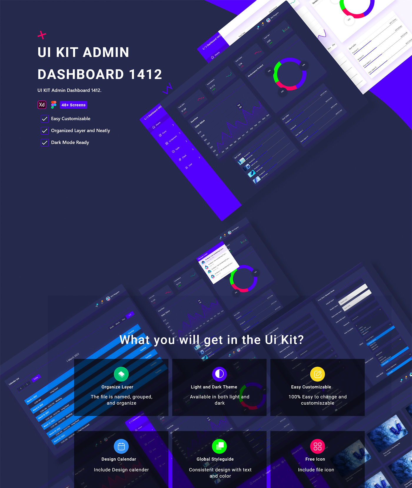 B端 42页 管理仪表板任务管理器 UI 工具包figma,xd格式