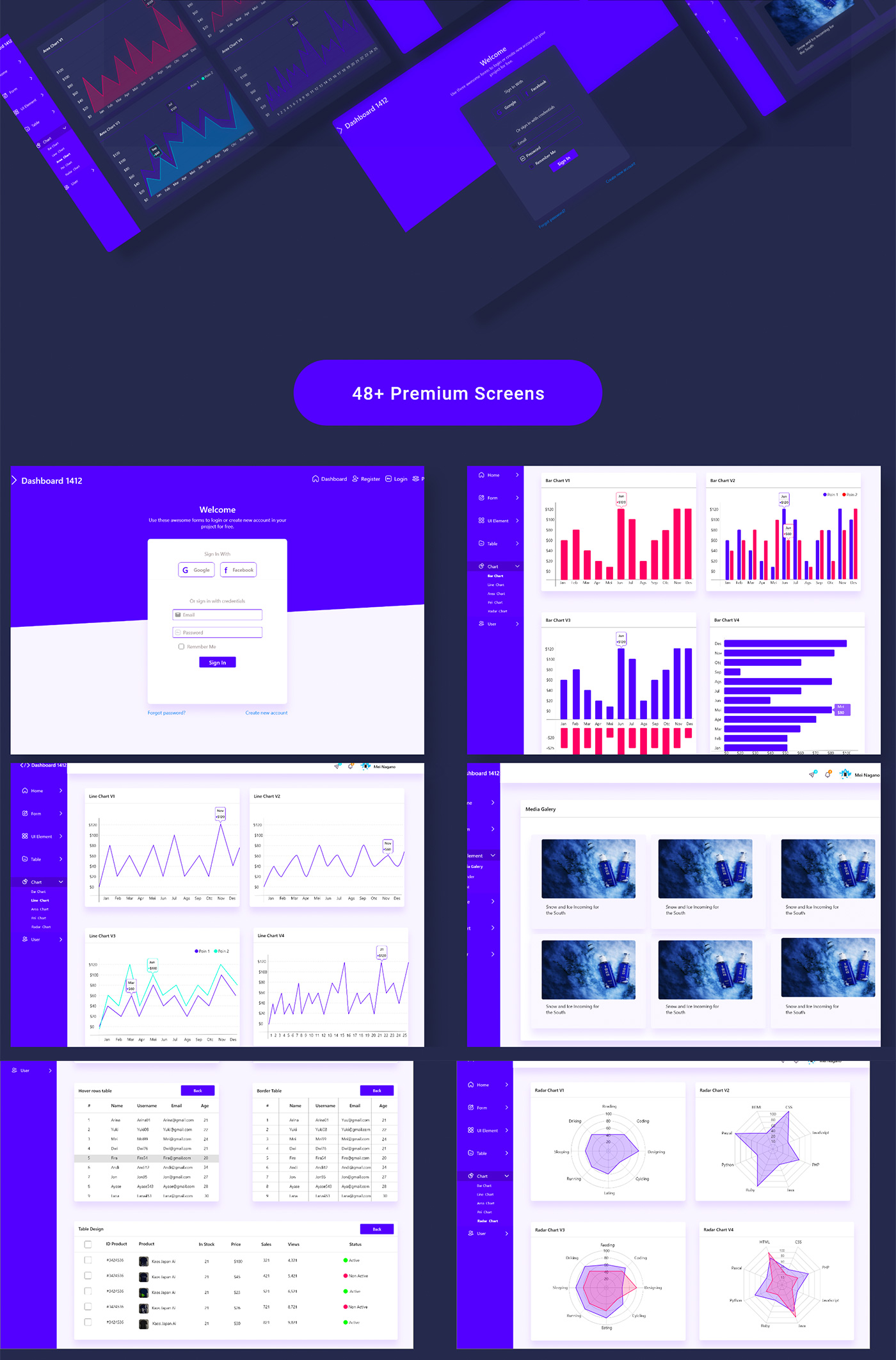 B端UI界面设计,后台数据统计、后台管理dashboard仪表盘 fig,sketch,xd,psd源文件