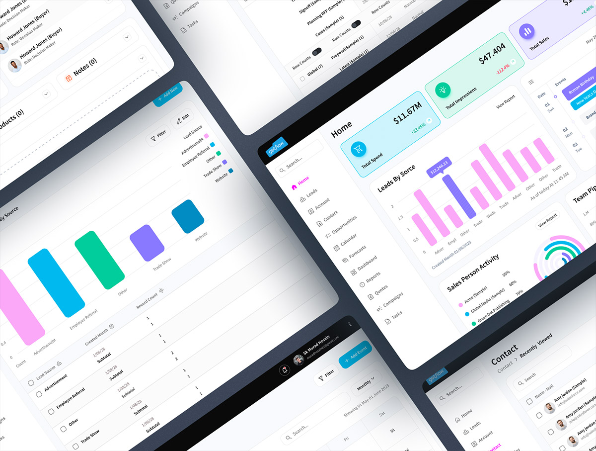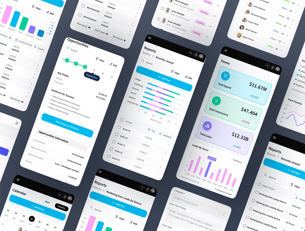 50页B端管理 CRM 仪表板 UI 响应式设计套件figma源文件