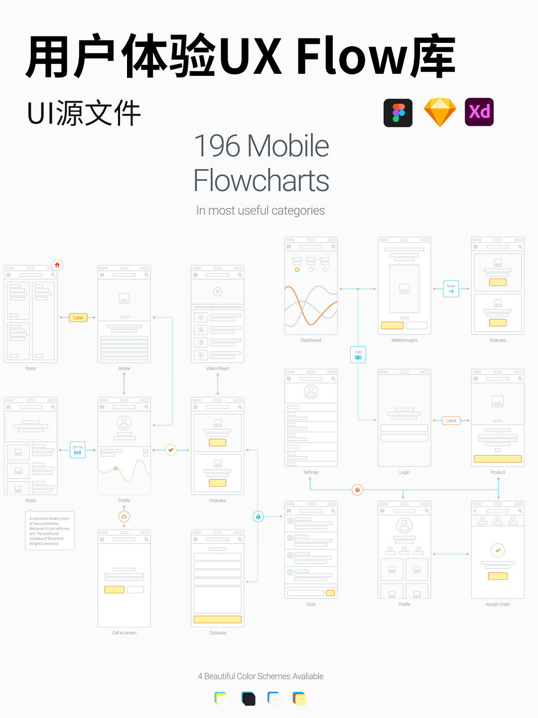 用户体验流程线框图 |UX Flow sketch,figma,xd源文件