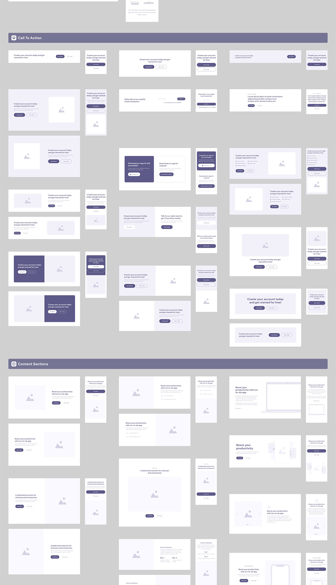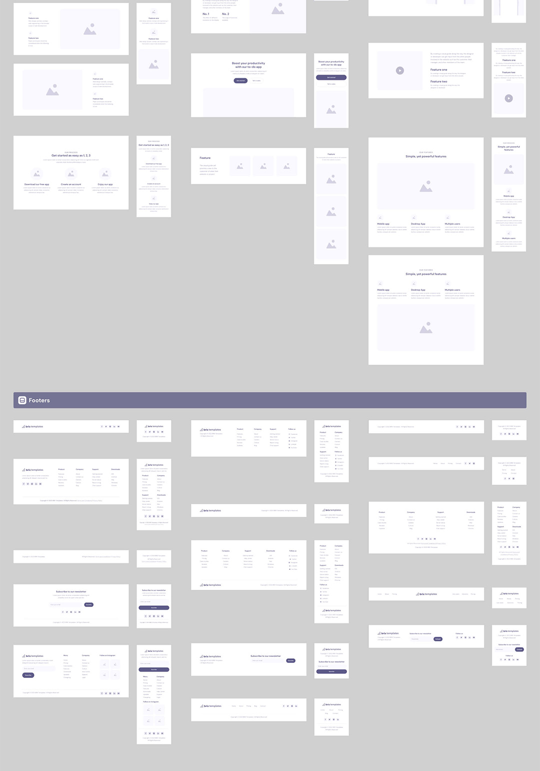 250个线框图、500个组件、10个网页模板sketch,xd,figma格式