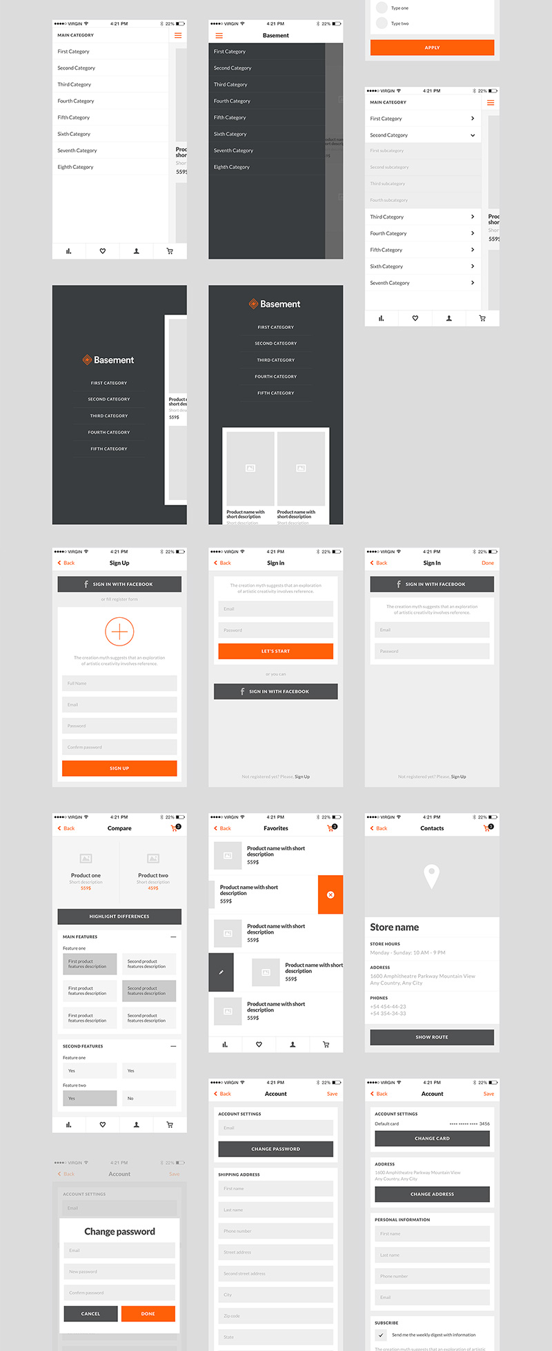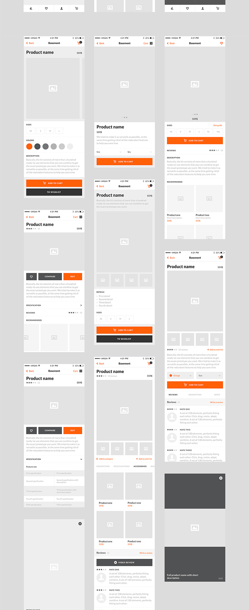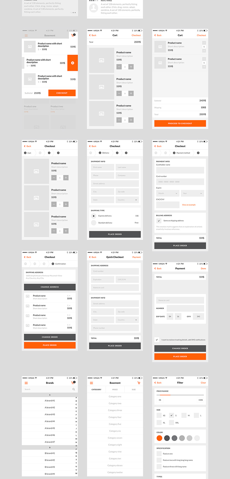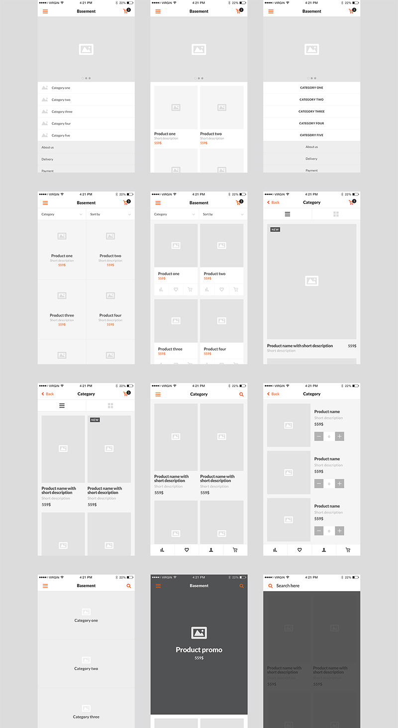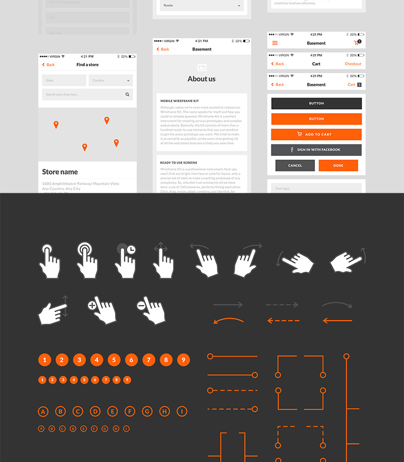 50页电商线框图,低保真原型套件iPhone 6分辨率Figma、Sketch 、 PSD格式