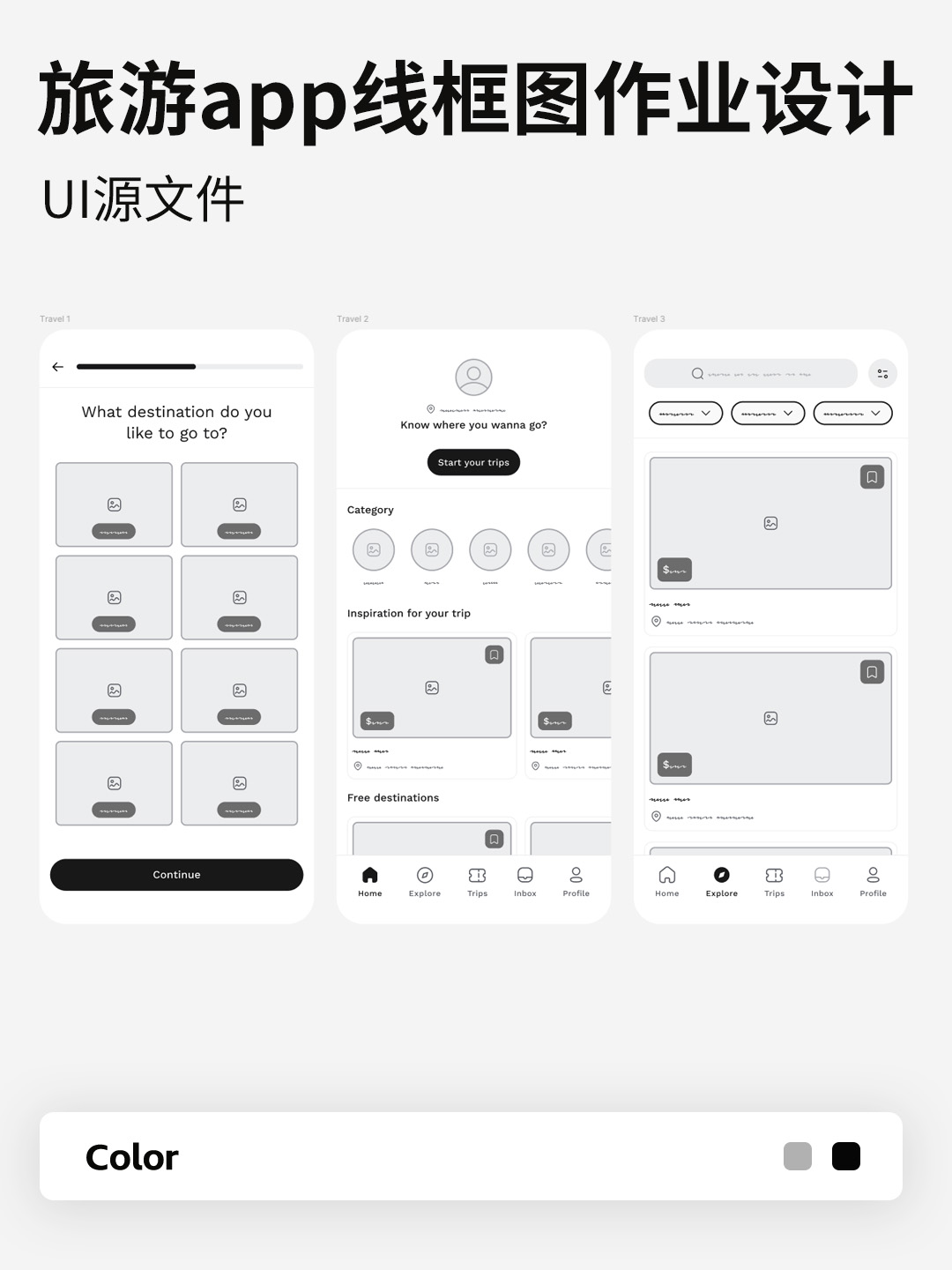 旅游app线框图大学生作业设计源文件