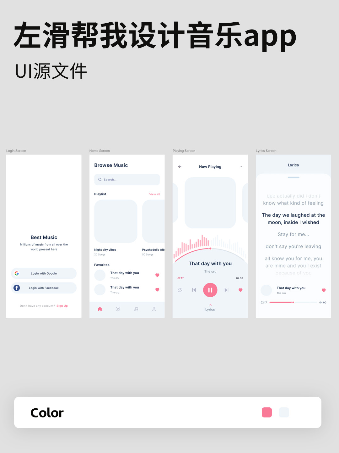 4页左滑设计音乐app低保真figma源文件