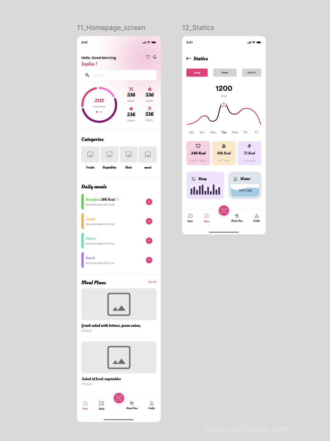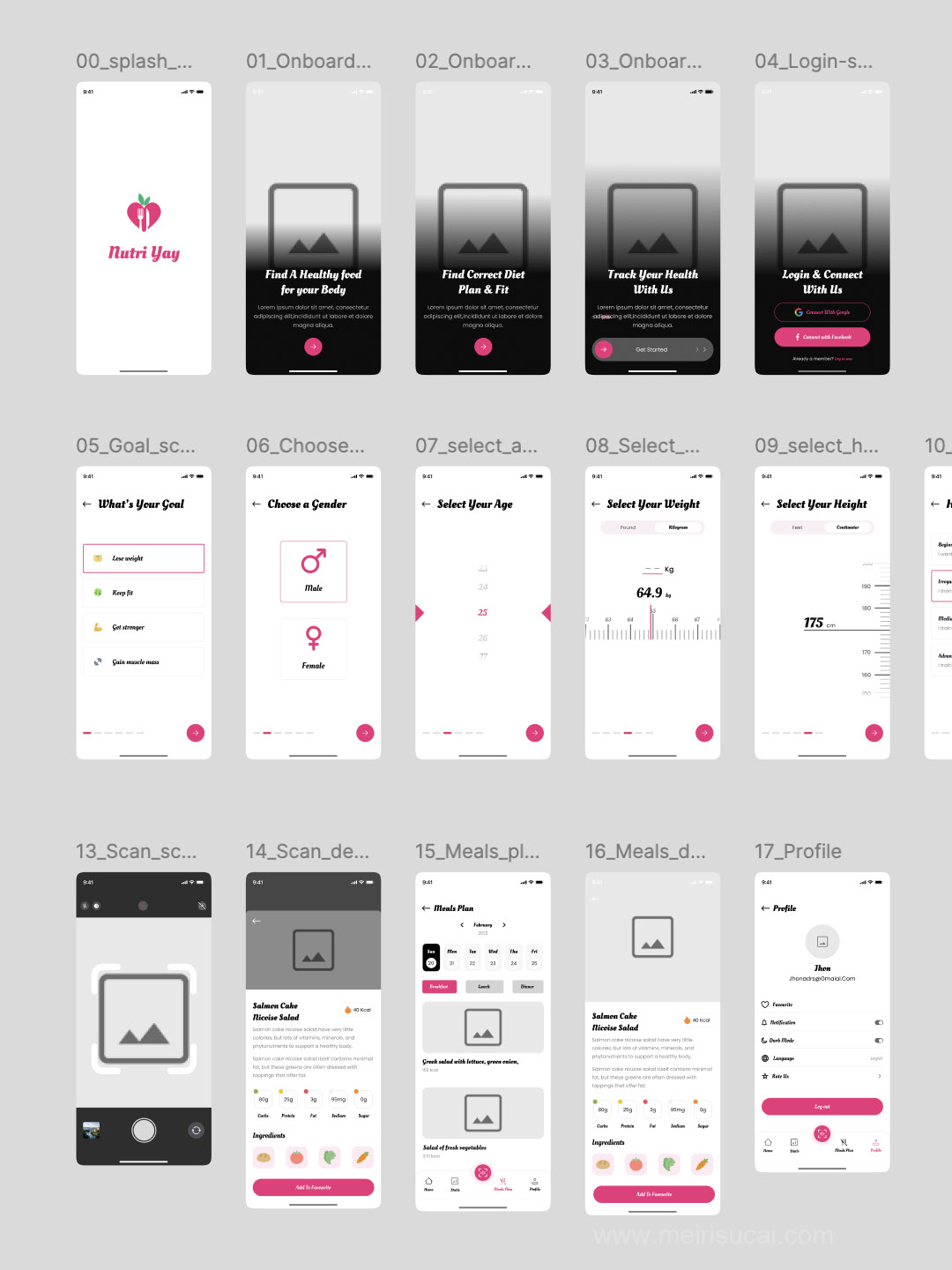 明暗32页营养跟踪、膳食计划、食谱数据app原型设计figma源文件