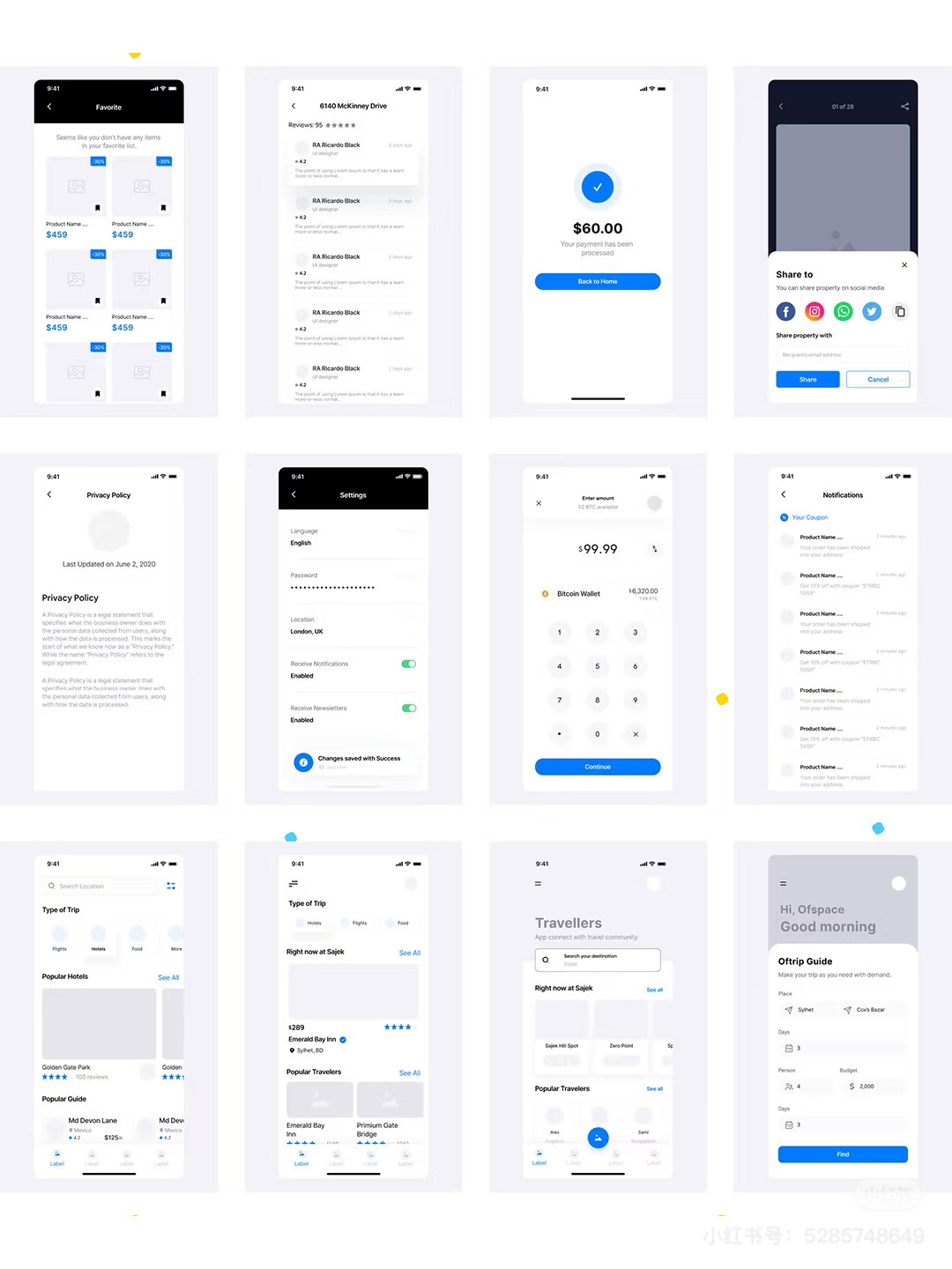 50页电商线框图,低保真原型套件iPhone 6分辨率Figma、Sketch 、 PSD格式