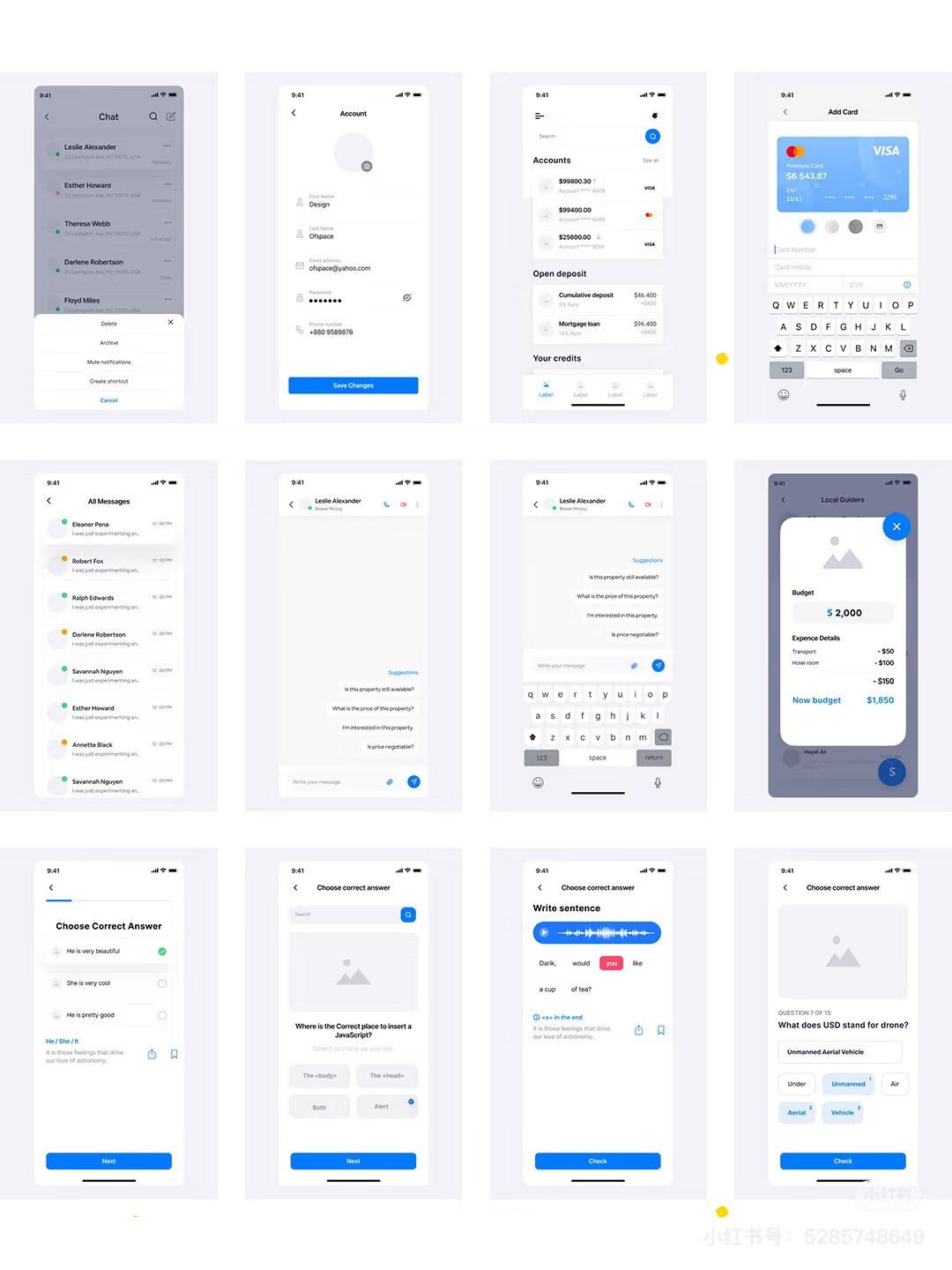 150页8个类别app低保真,线框UX工具包figma,xd格式