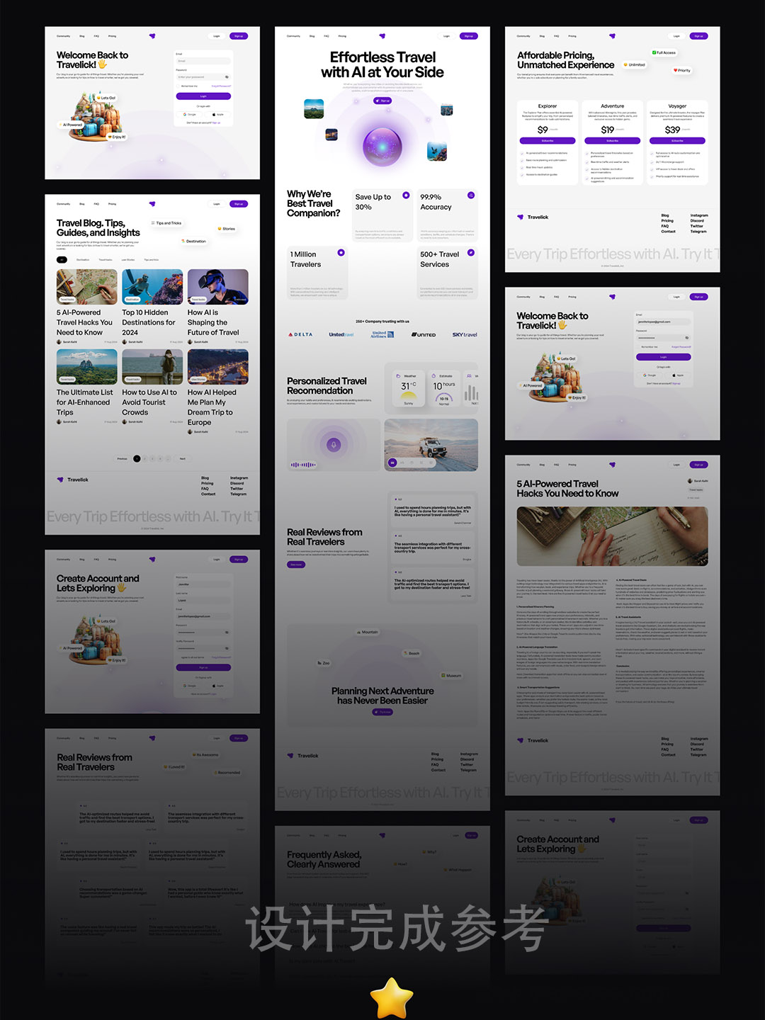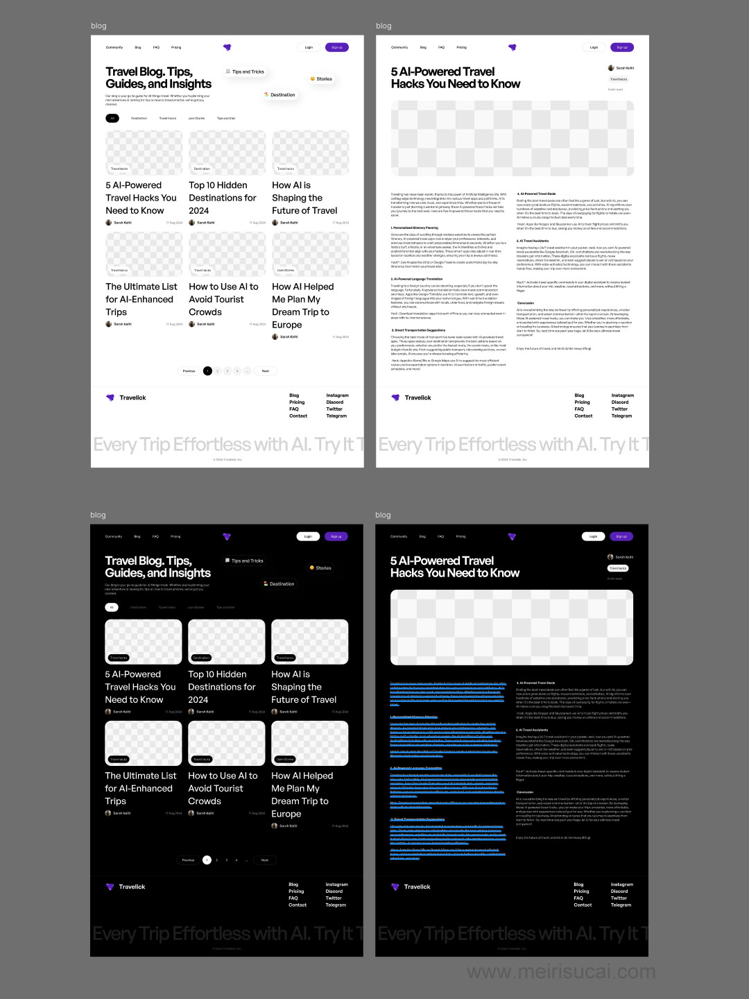 40页响应式AI旅游网站原型(无图片)UI设计figma源文件