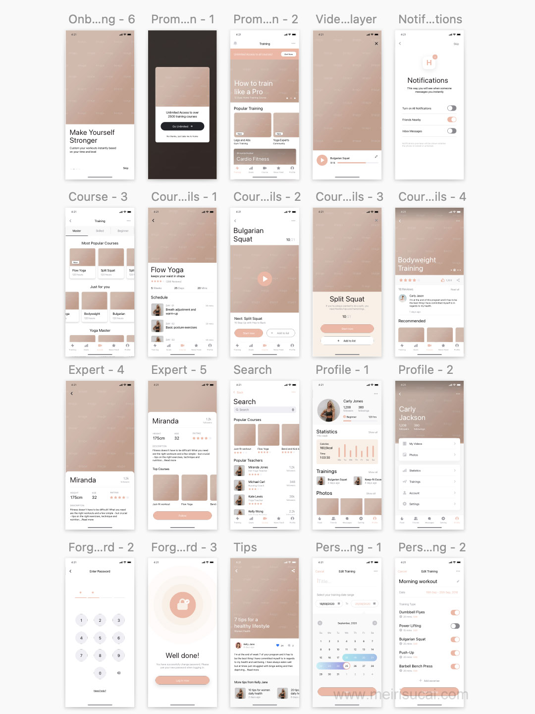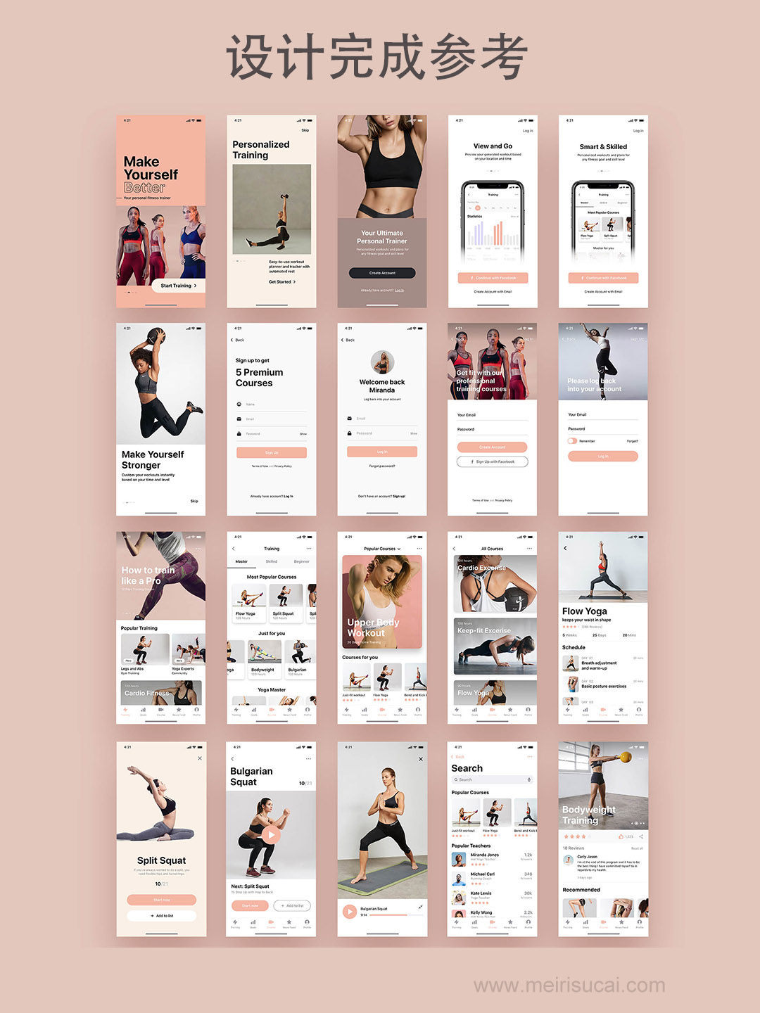 40页健身运动app原型图设计sketch源文件(没有素材图片)