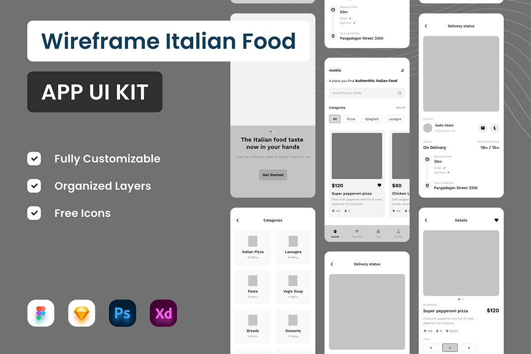 5页意大利美食app原型设计Figma、Sketch 、 XD 、PSD格式