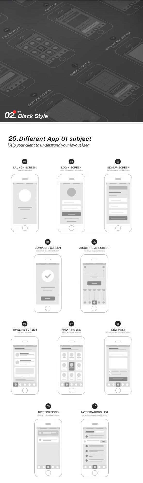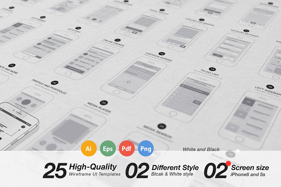 25页APP UI设计原型,线框图AI, PPT, PNG,EPS格式