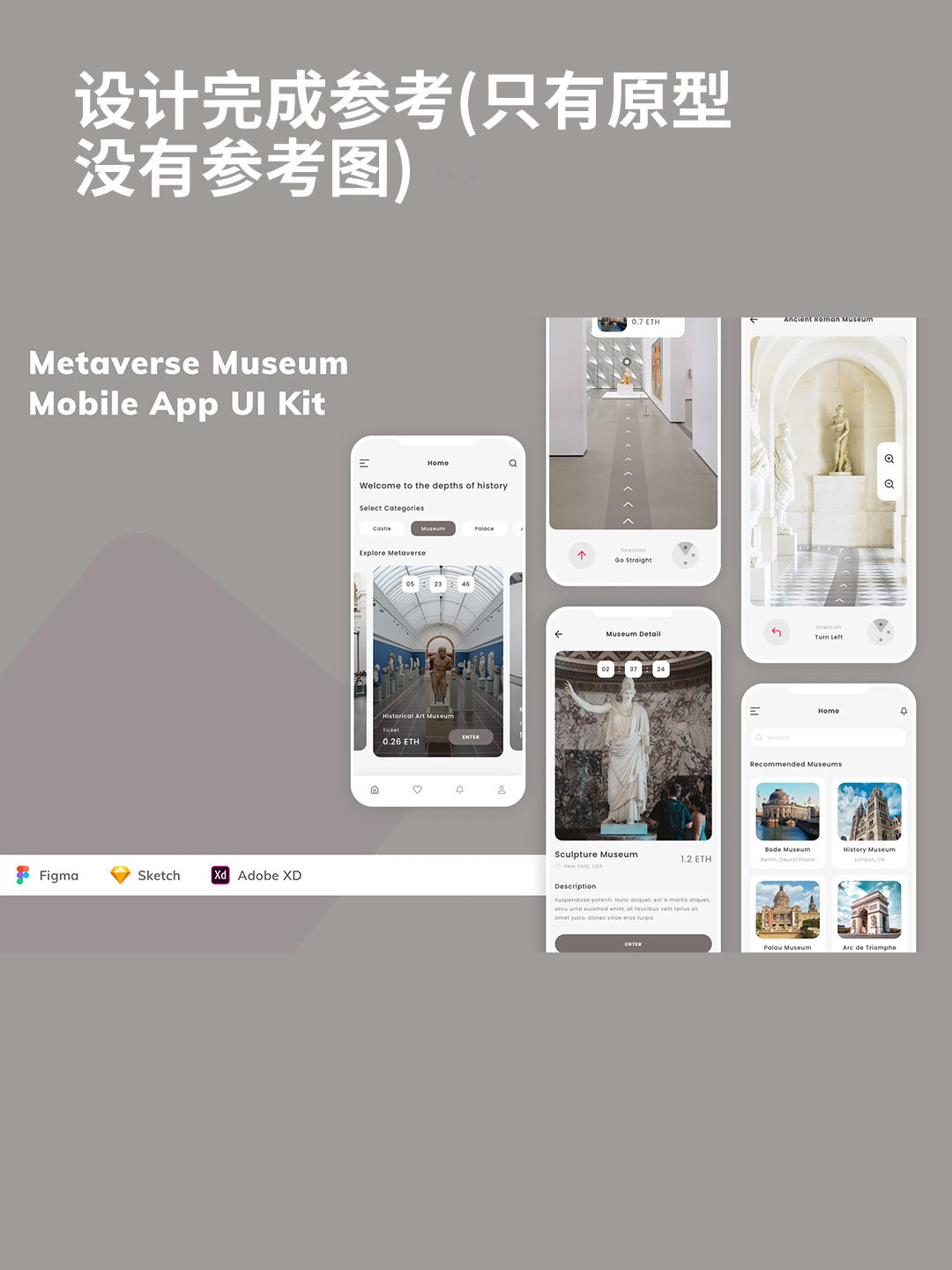 5页VR艺术博物馆设计原型sketch,xd,figma格式(没有图片)