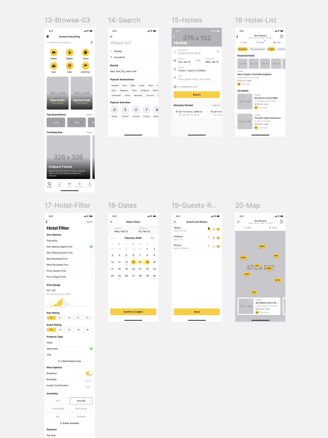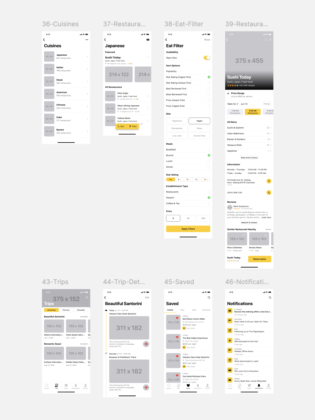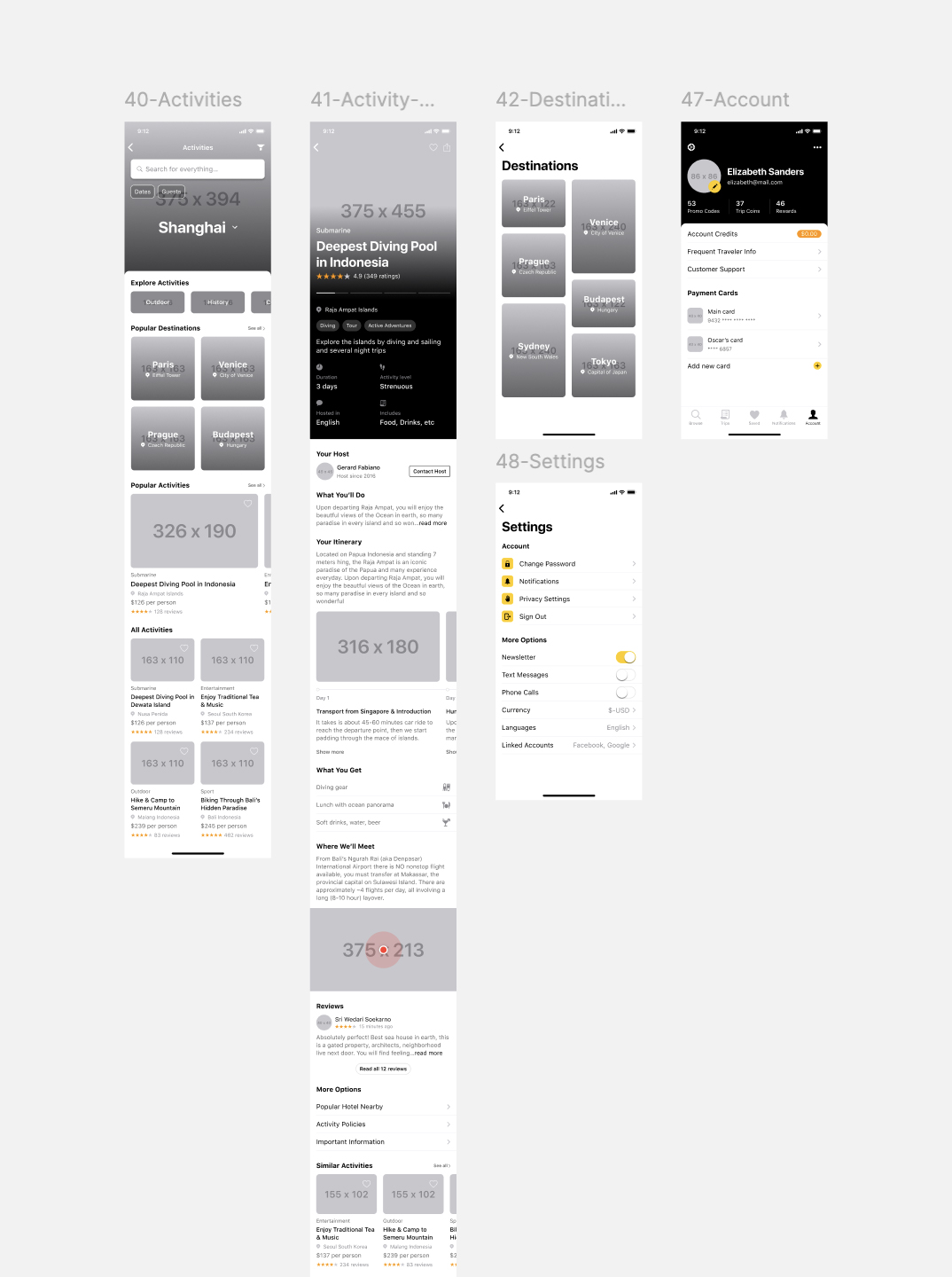 48页度假、旅游APP原型设计sketch,xd,figma,psd格式