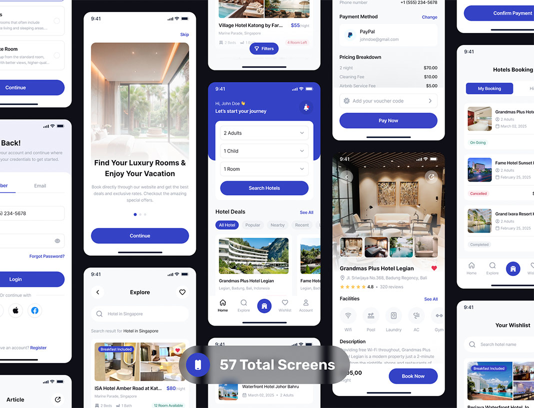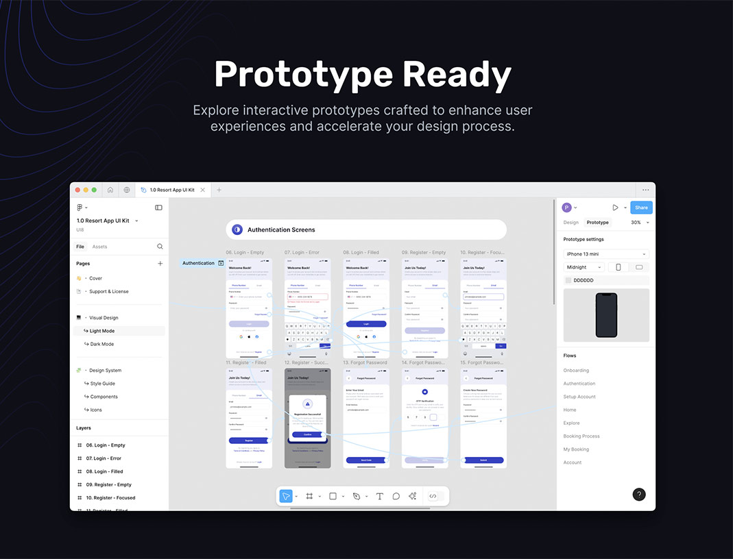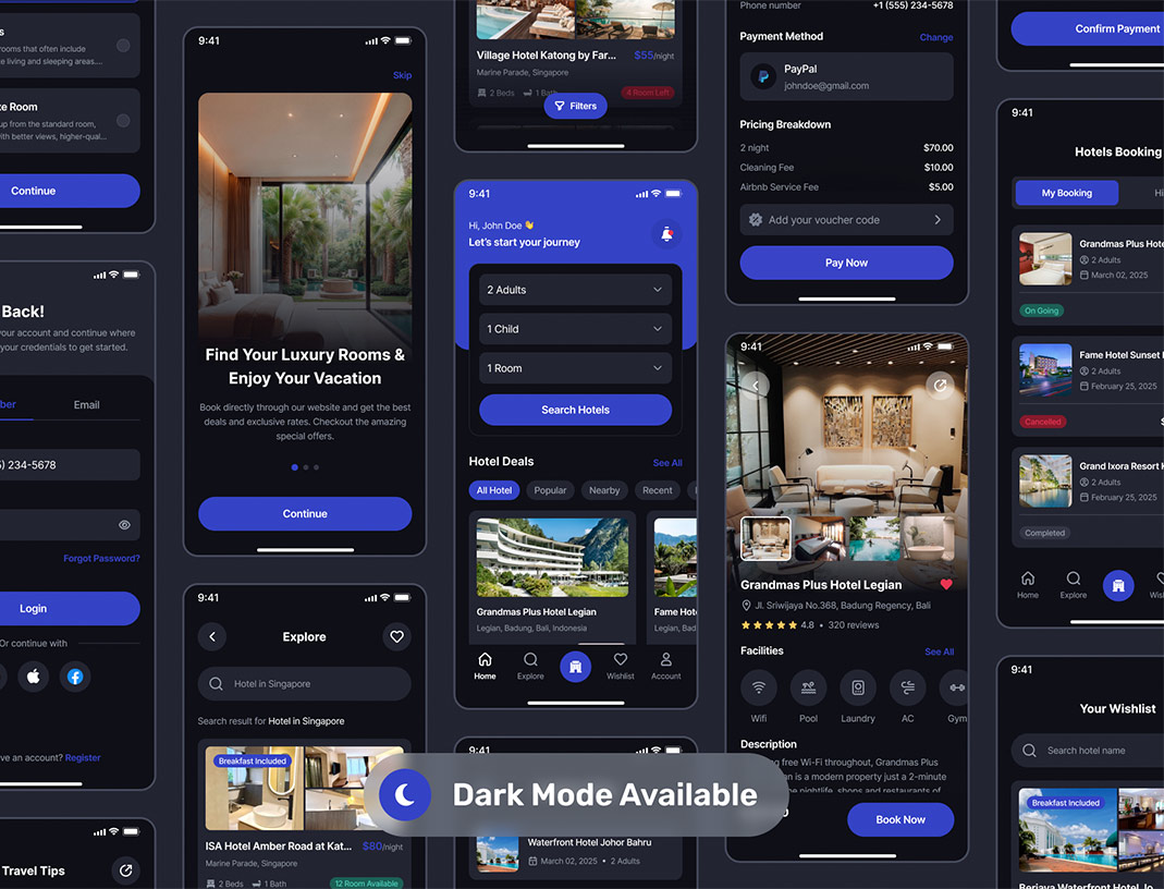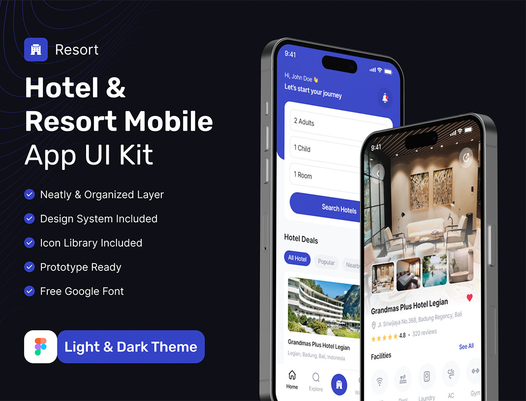 明暗共104页邮轮 - 酒店和度假村预订APP带交互UI设计figma格式