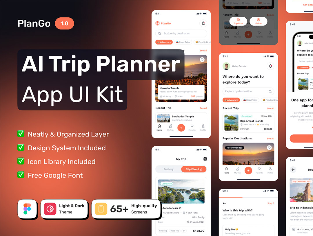 明暗各68页AI旅行规划师APP设计figma源文件(带交互)