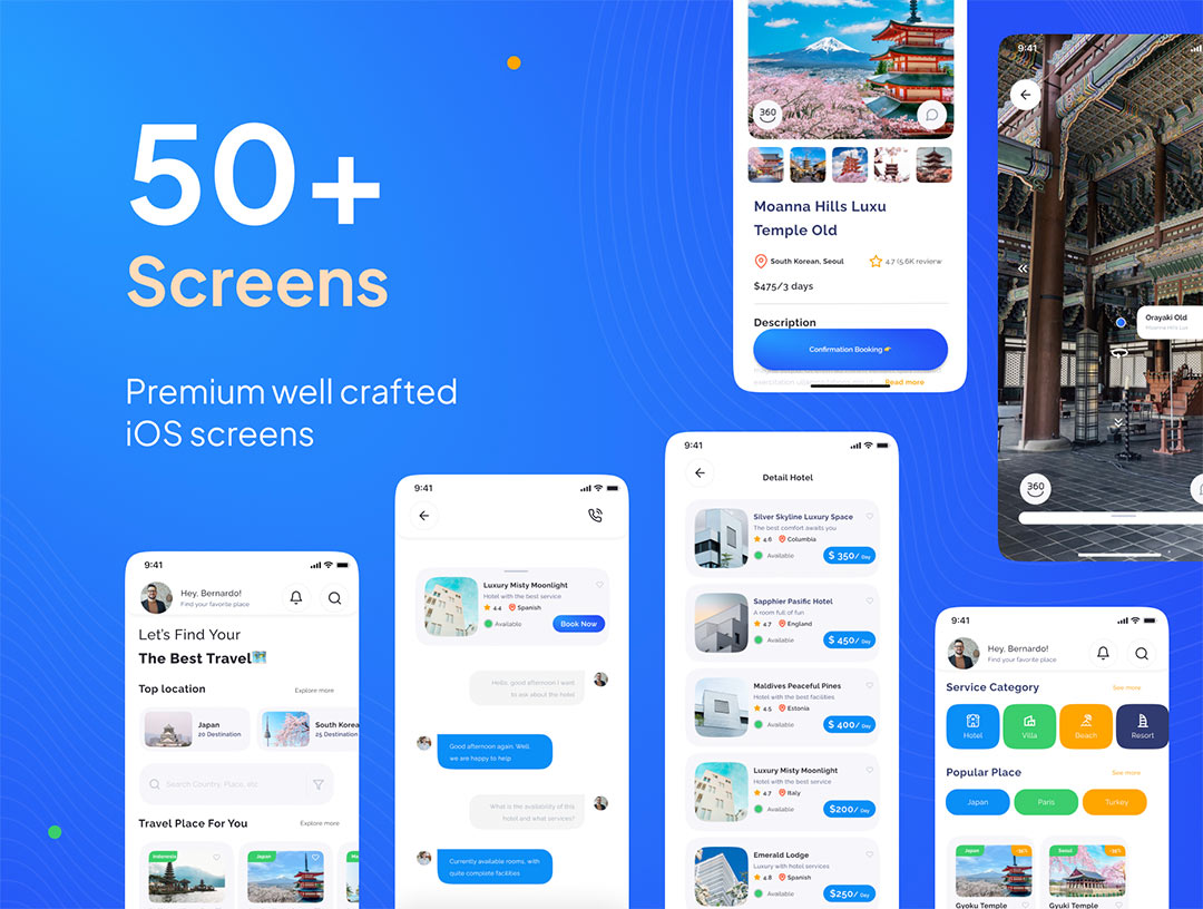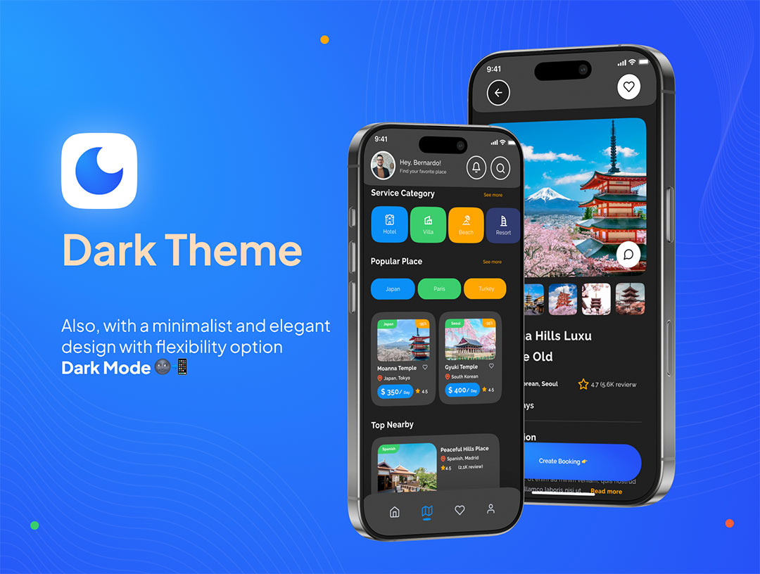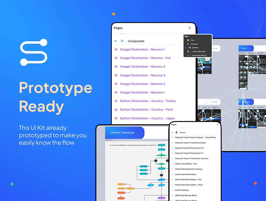 明暗各50页旅游app设计figma格式(带交互和用户流程图)