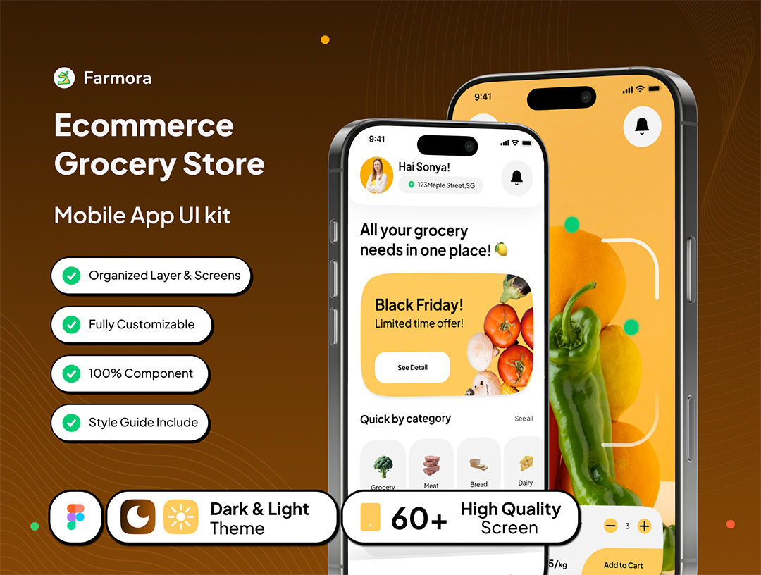 明暗各64页高端有机食品,美食外卖app设计figma格式(包含交互)