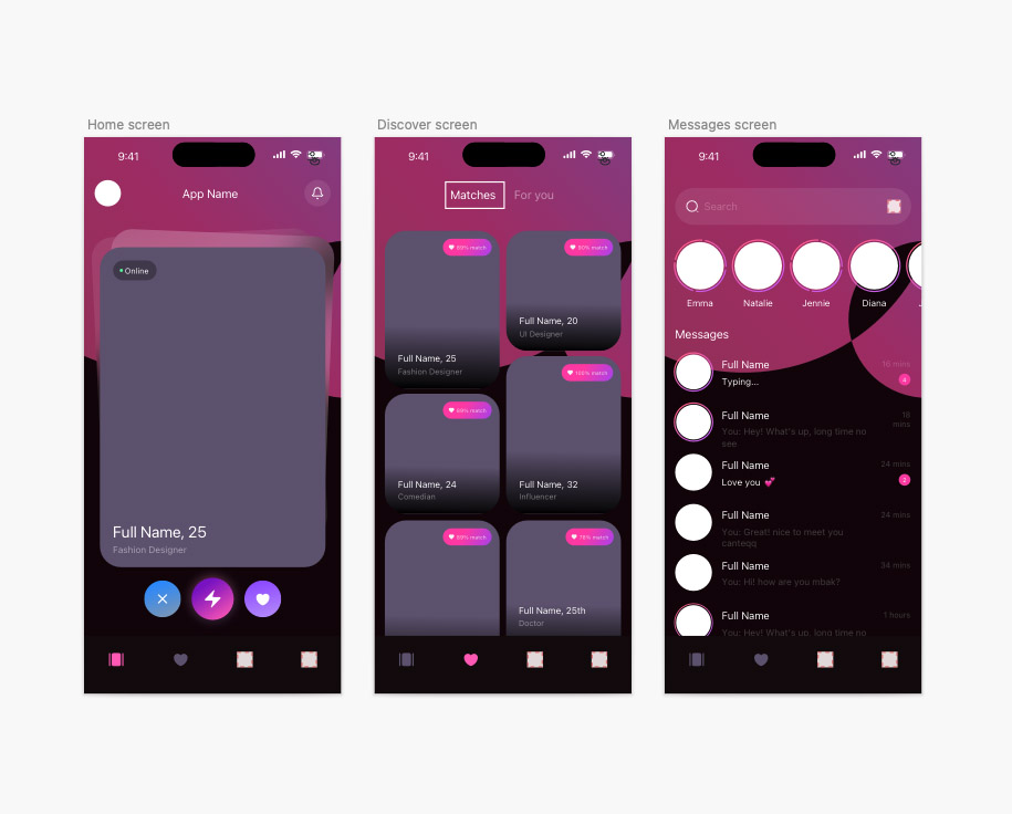 年轻化社交,约会app原型设计sketch,xd,figma格式