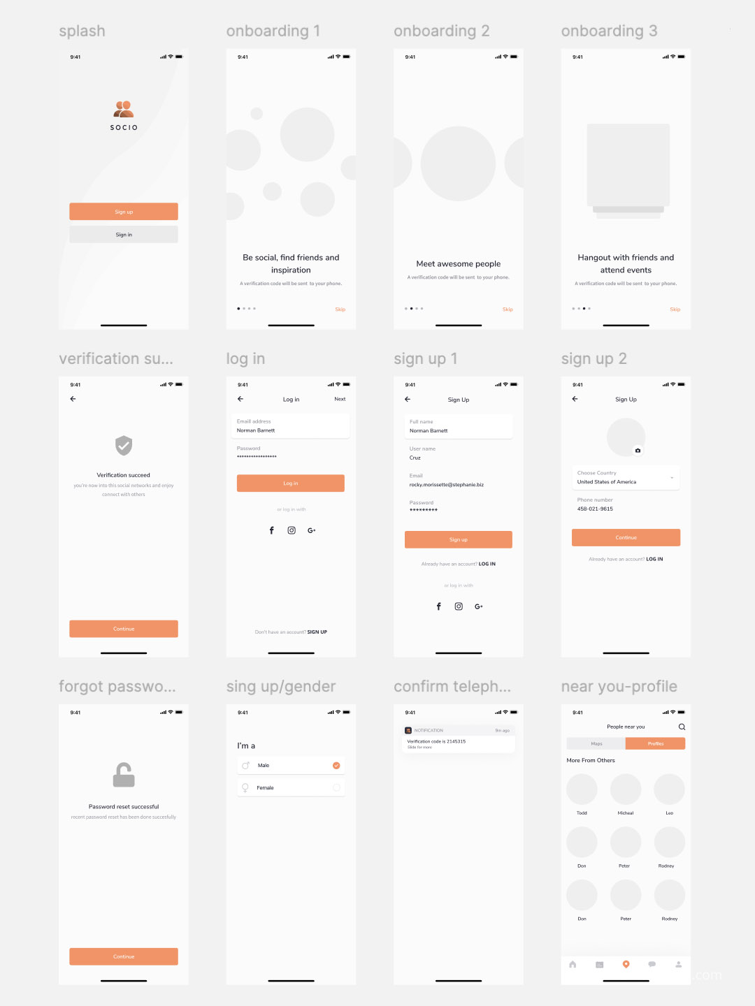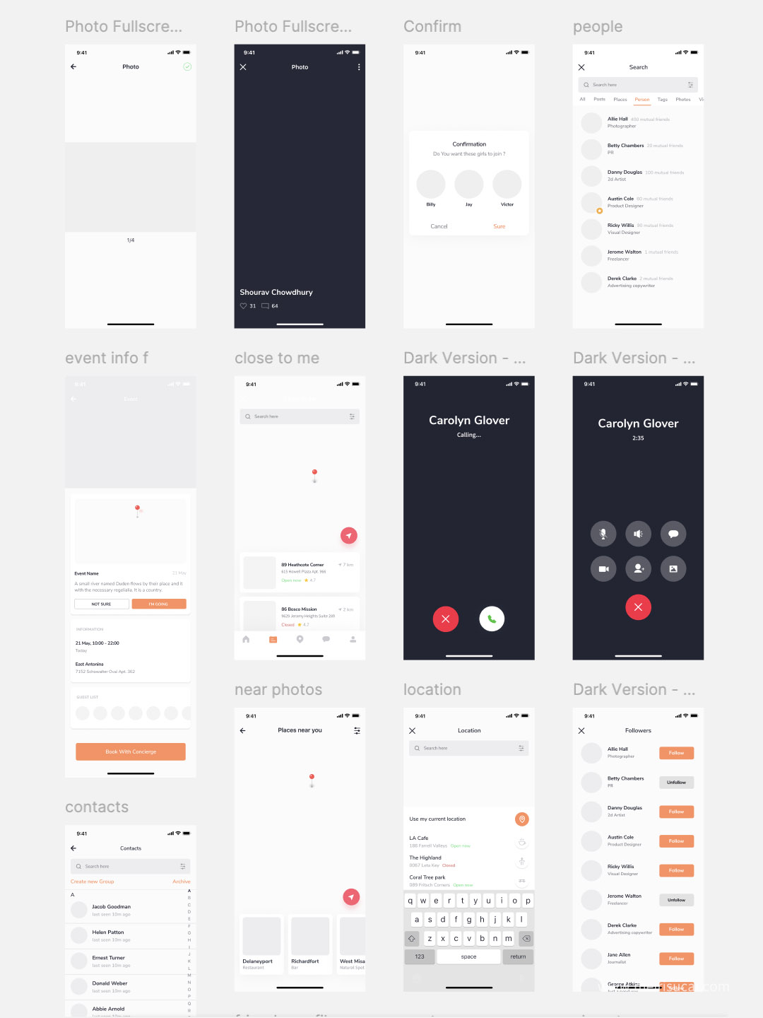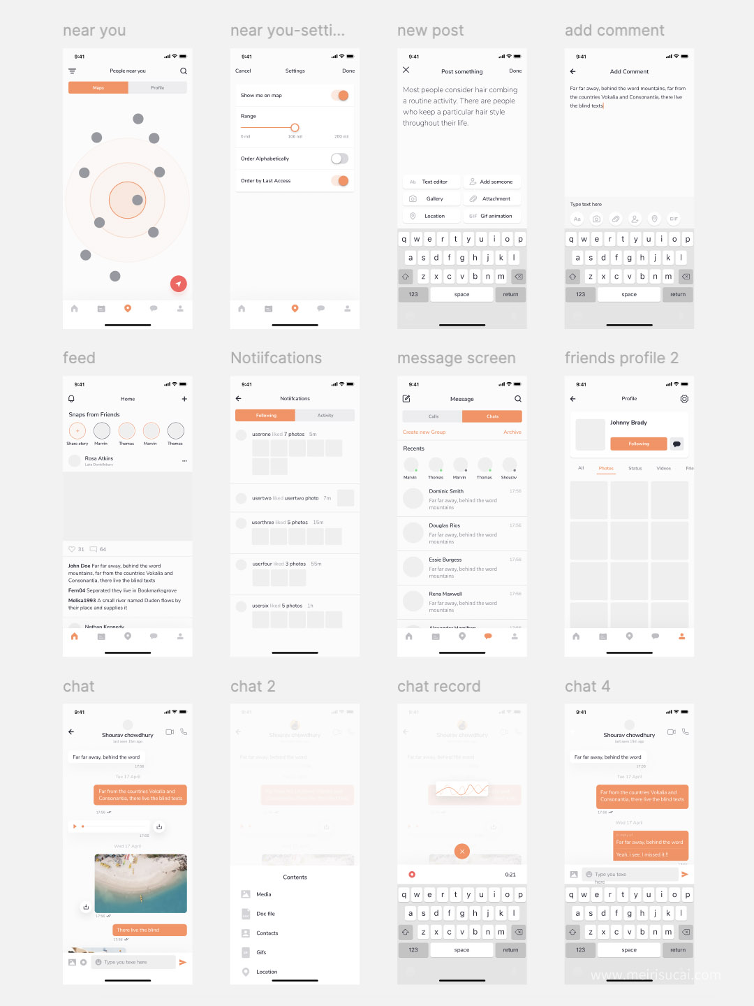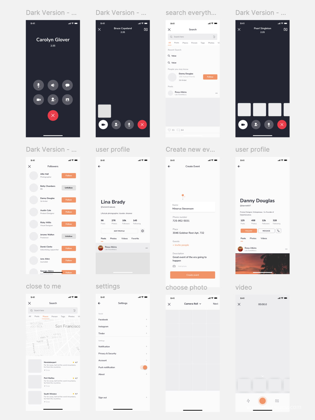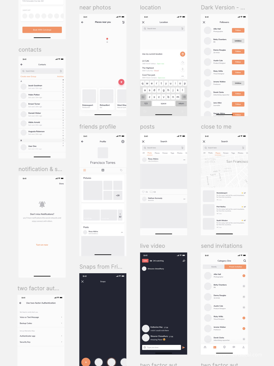 83页简约社交app原型图界面设计Figma、Sketch 、 XD源文件苹果x分辨率