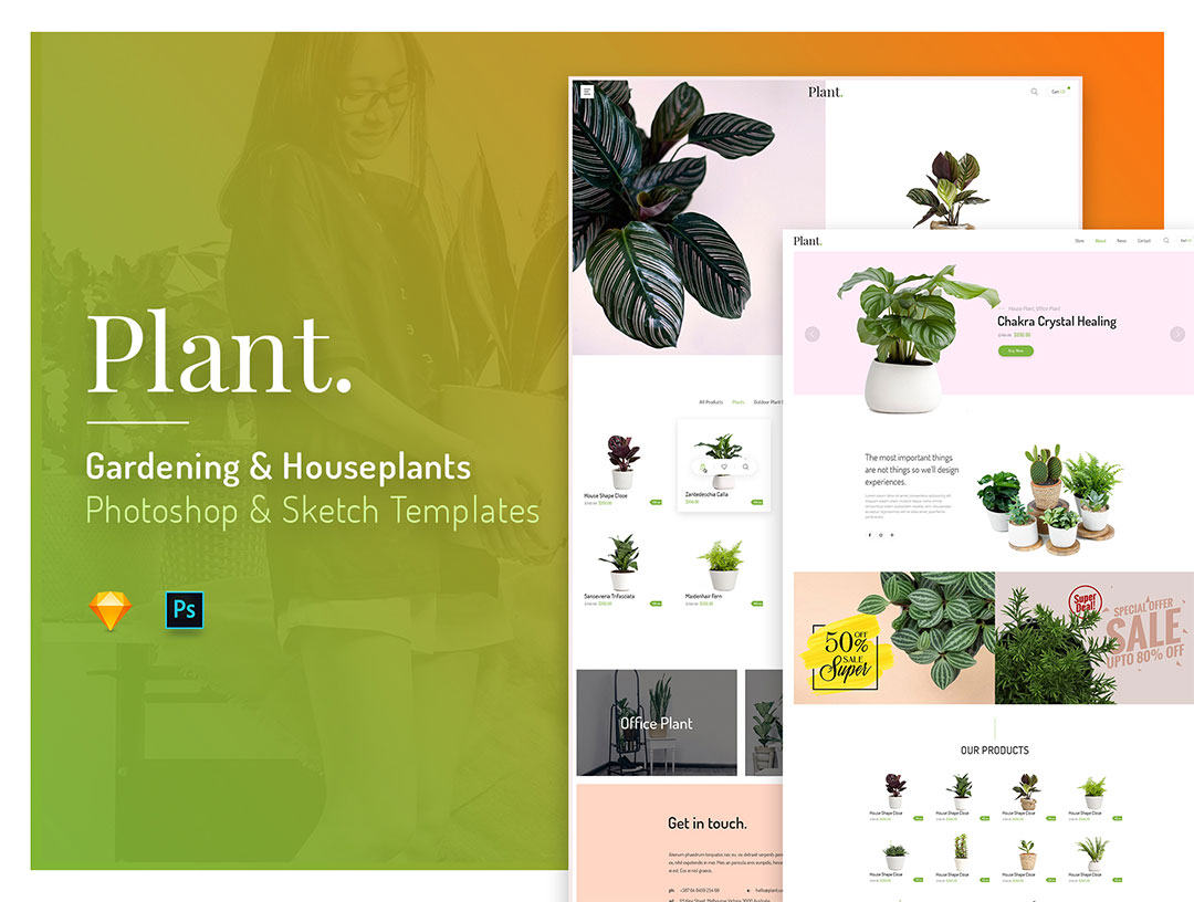 38页绿植电商网站原型psd,sketch格式(没有图片,需自己添加)