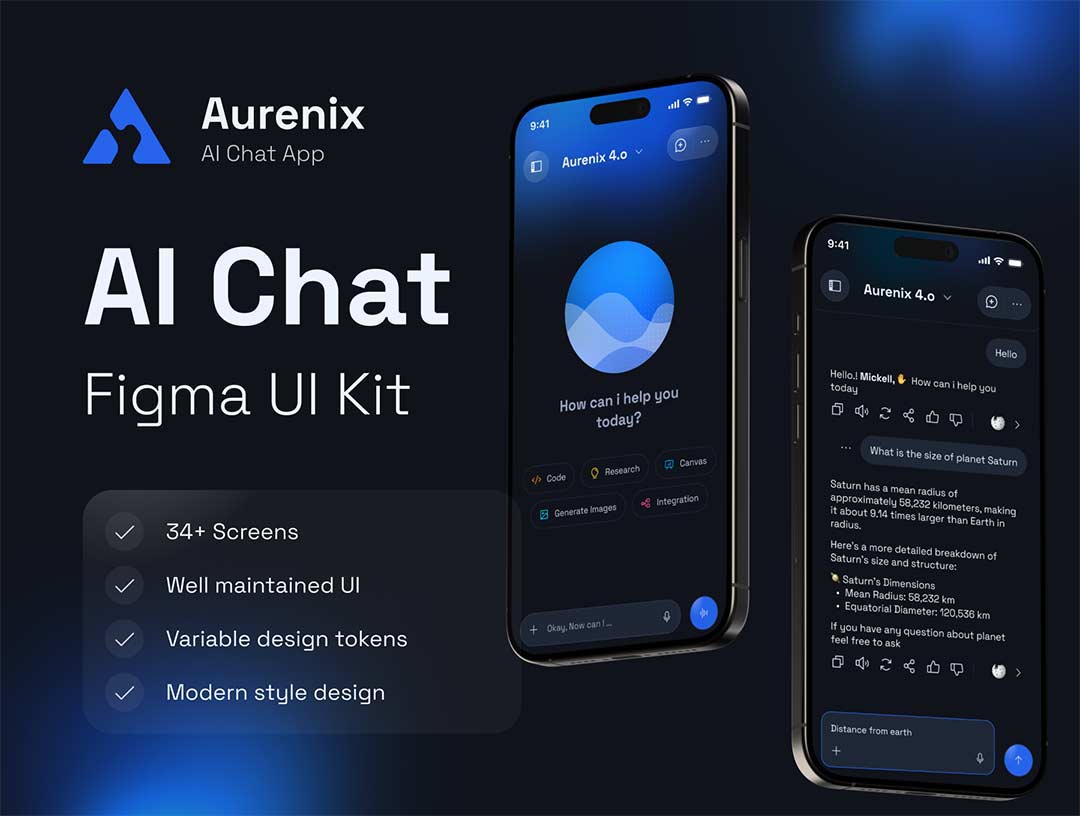 带交互34页AI 聊天应用app界面设计figma源文件