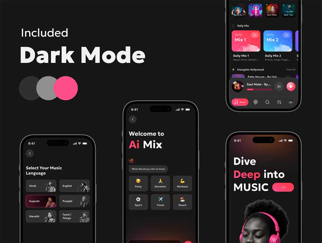 带交互明暗共60页音乐和播客app设计figma源文件