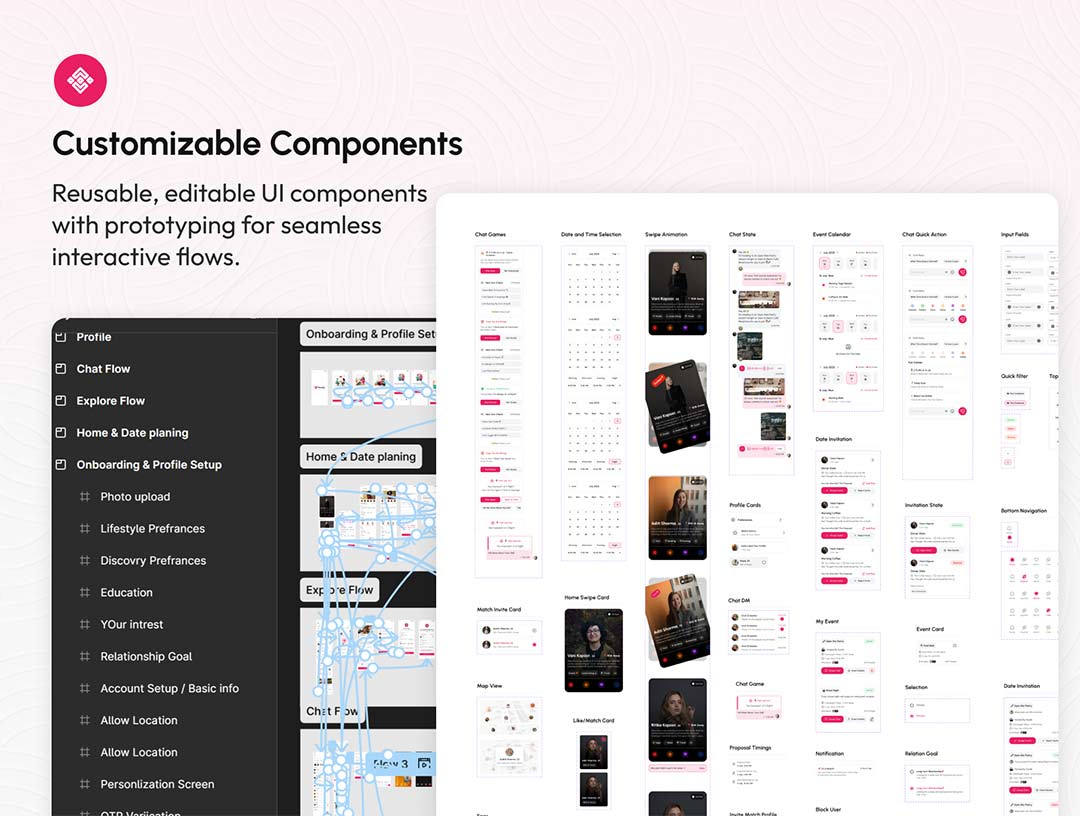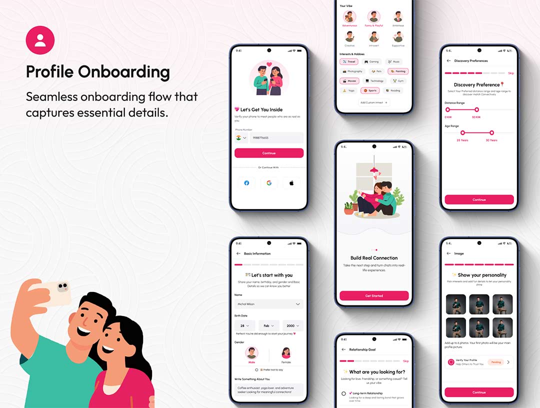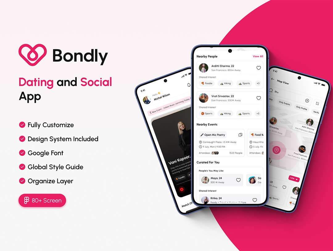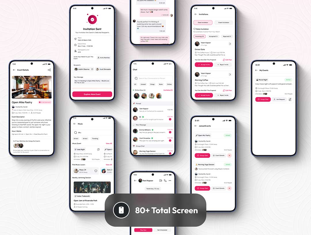 年轻化社交,约会app原型设计sketch,xd,figma格式
