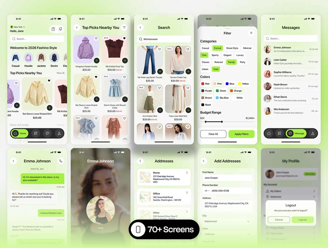 包含交互70页时尚的电商app界面设计figma源文件