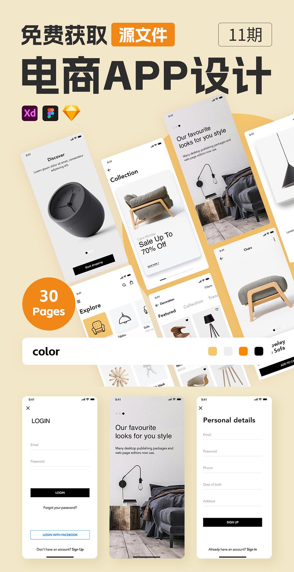 共30个页面,包含登录注册、产品介绍、个人中心、菜单、详情页面等,仅供个人学习使用哦! 提供的文件类型:Figma、Sketch 和 XD(可通过三方软件转为PSD格式)