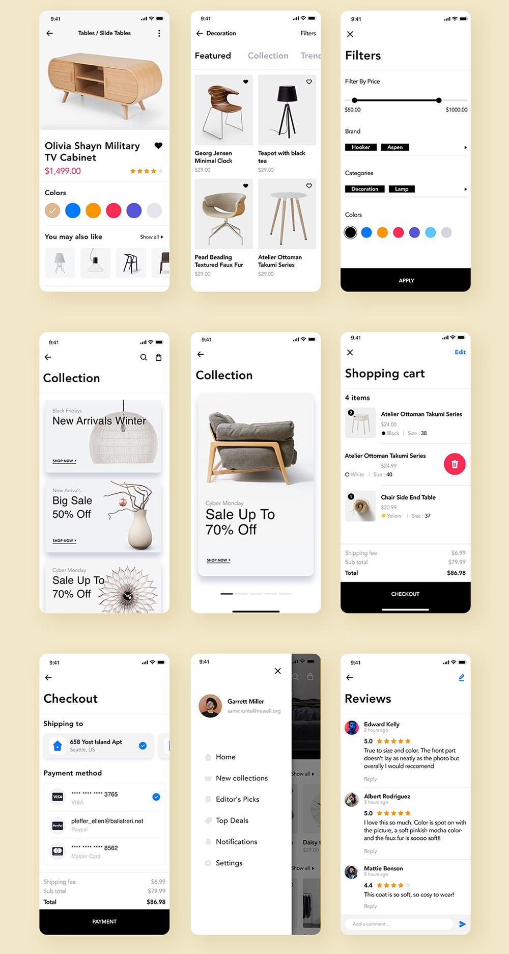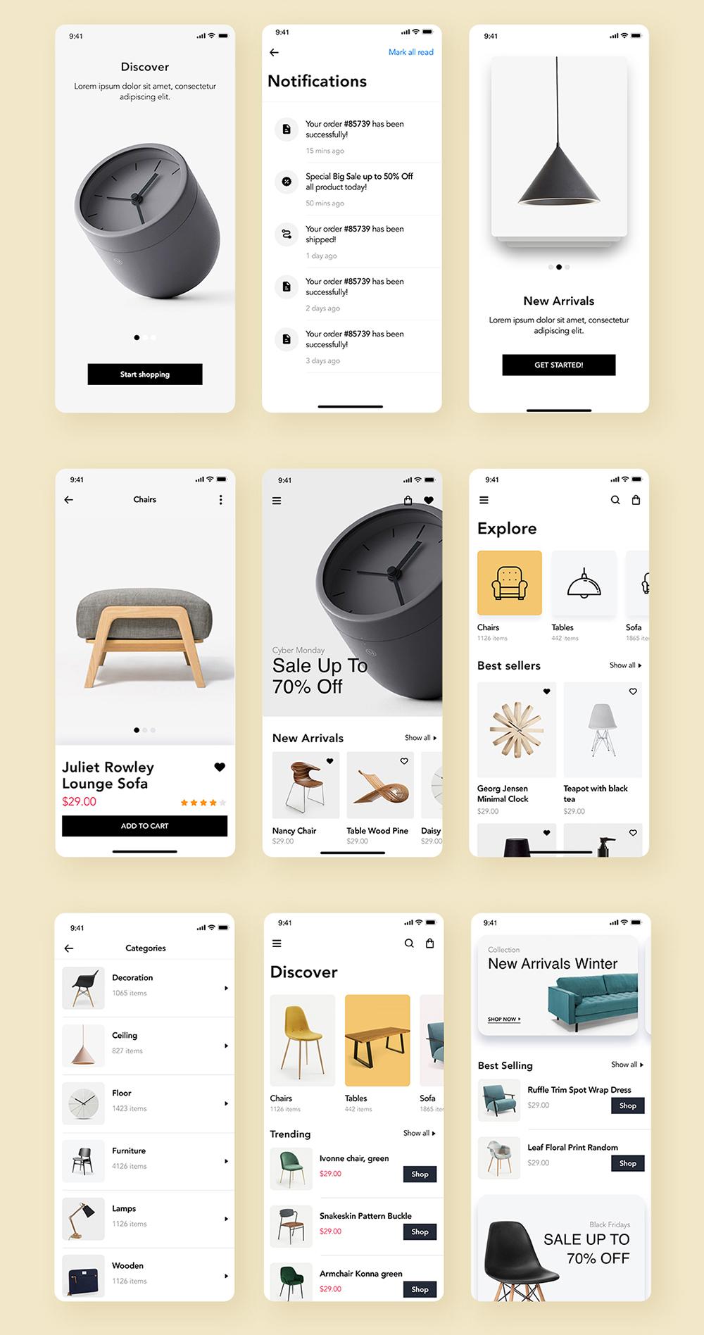 家具电商APP设计sketch,xd,figma源文件 | 家具UI界面设计