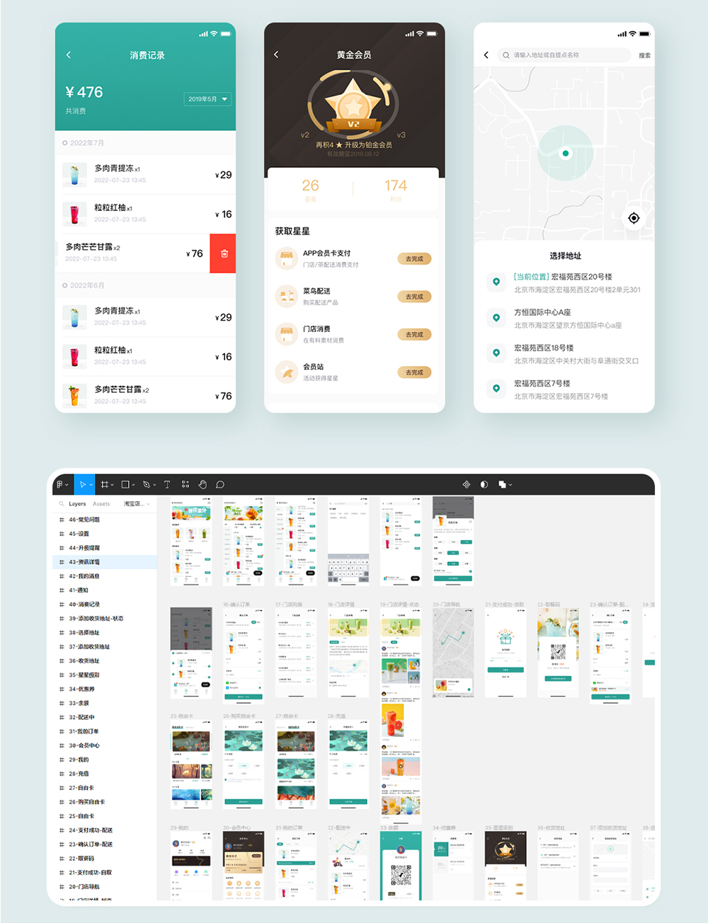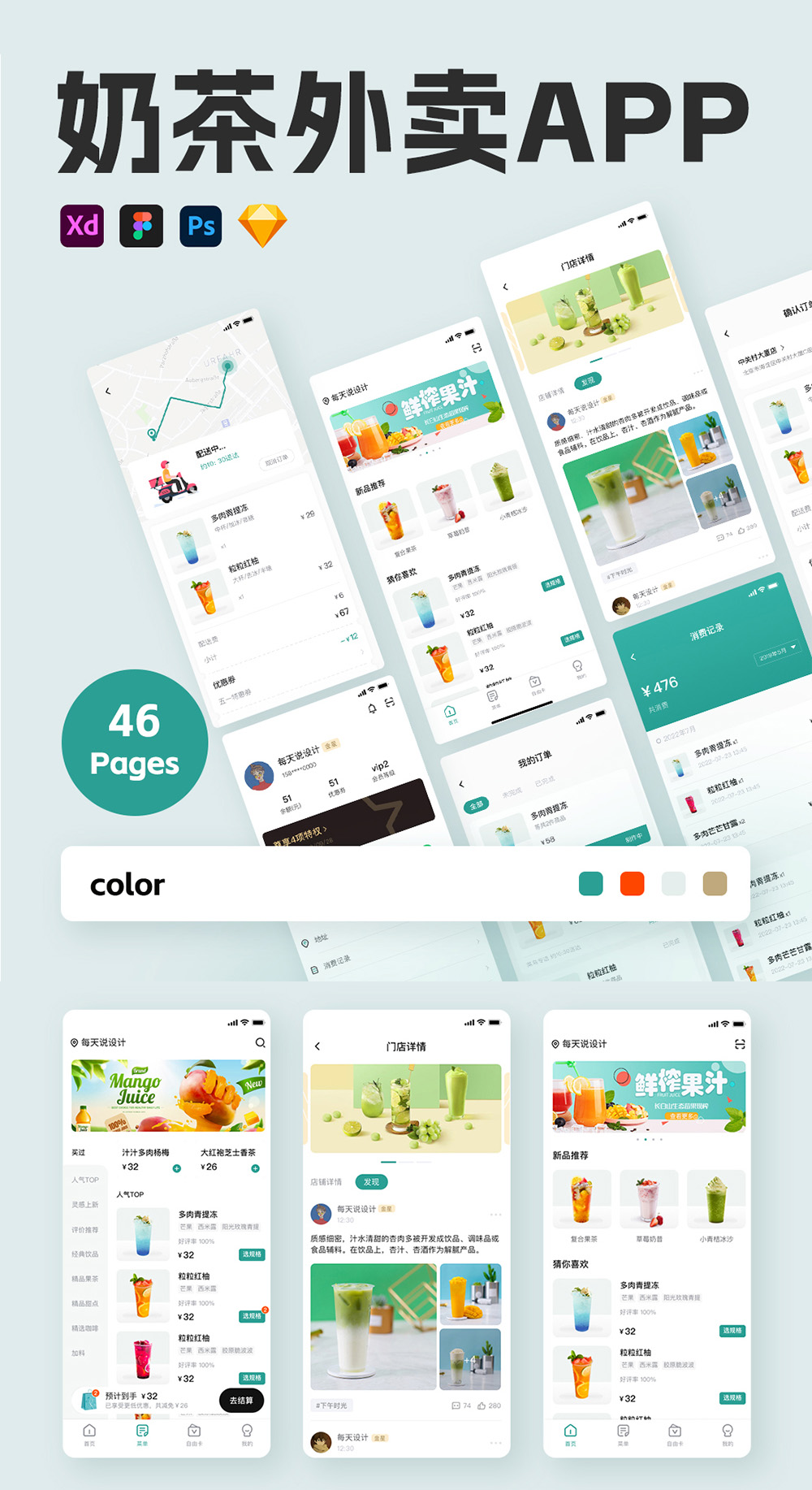46页奶茶外卖APP| 饮品APP设计Figma、Sketch 源文件