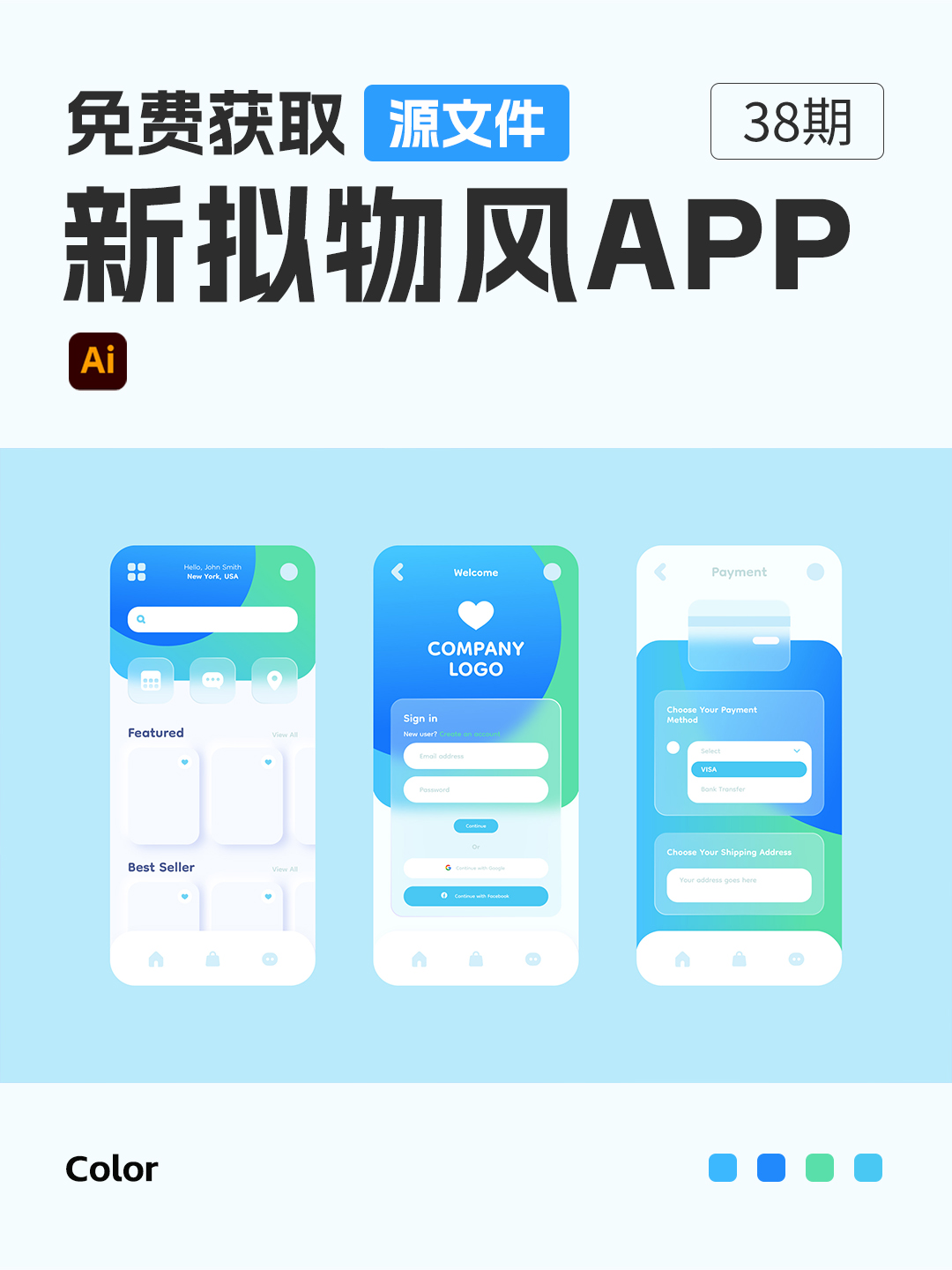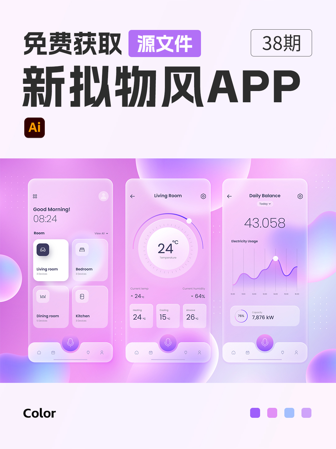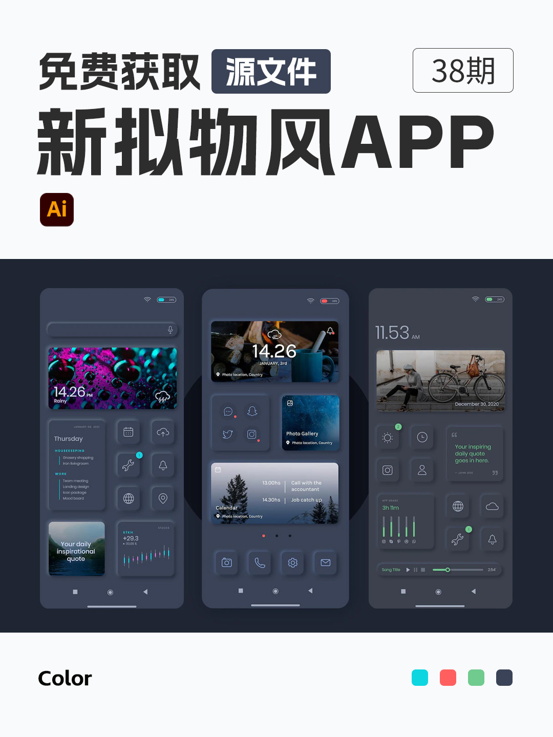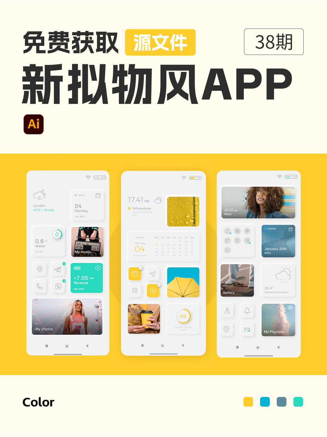 风格特征 1⃣元素(元素并不浮动,色彩相对单一,与背景高度统 一) 2⃣投影(左上角亮色投影,右下角深色投影) 3⃣图形(多以卡片样式出现,更加适合大圆角图形)
