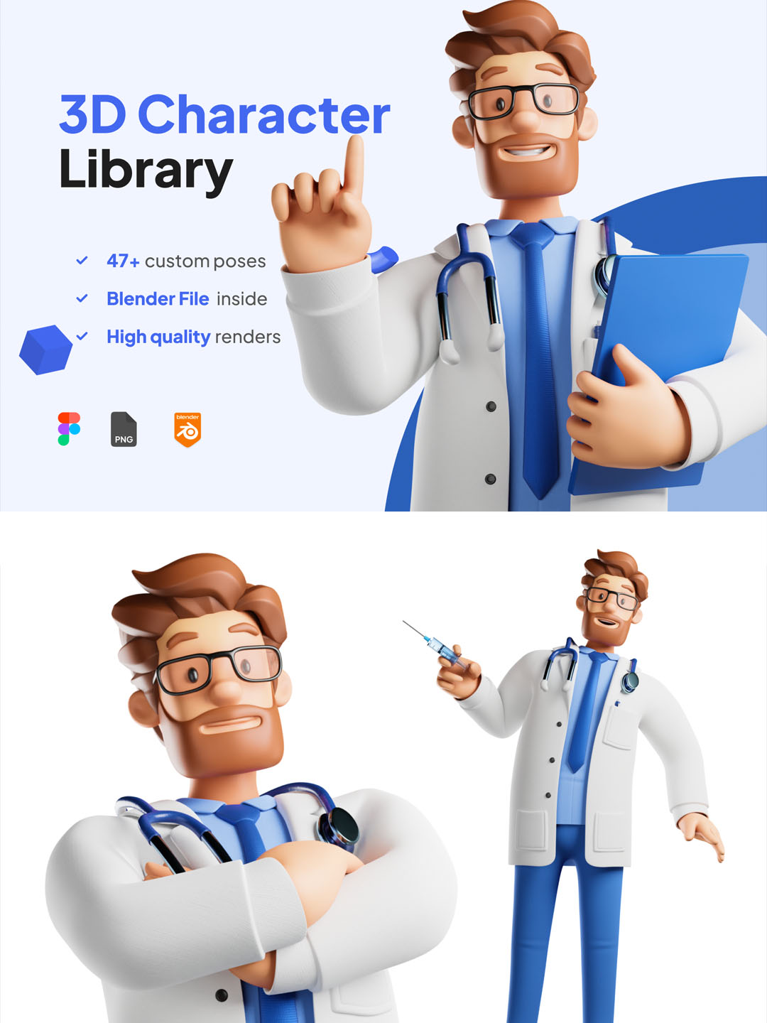 3D医生角色IP人物带骨骼绑定资源blender源文件