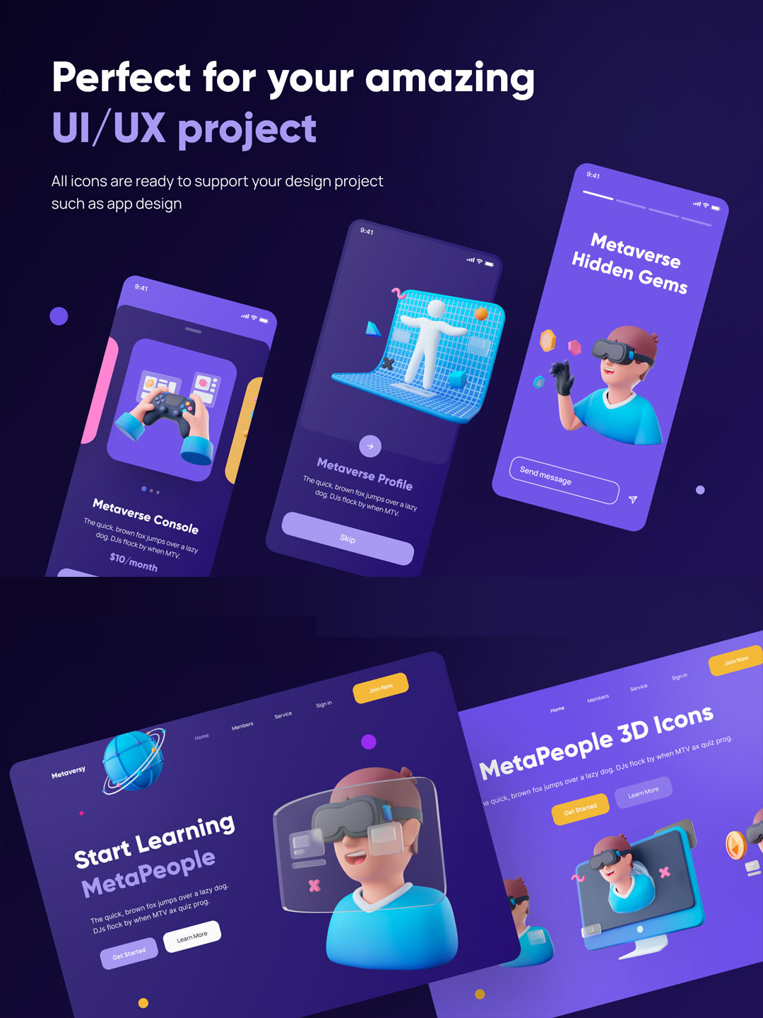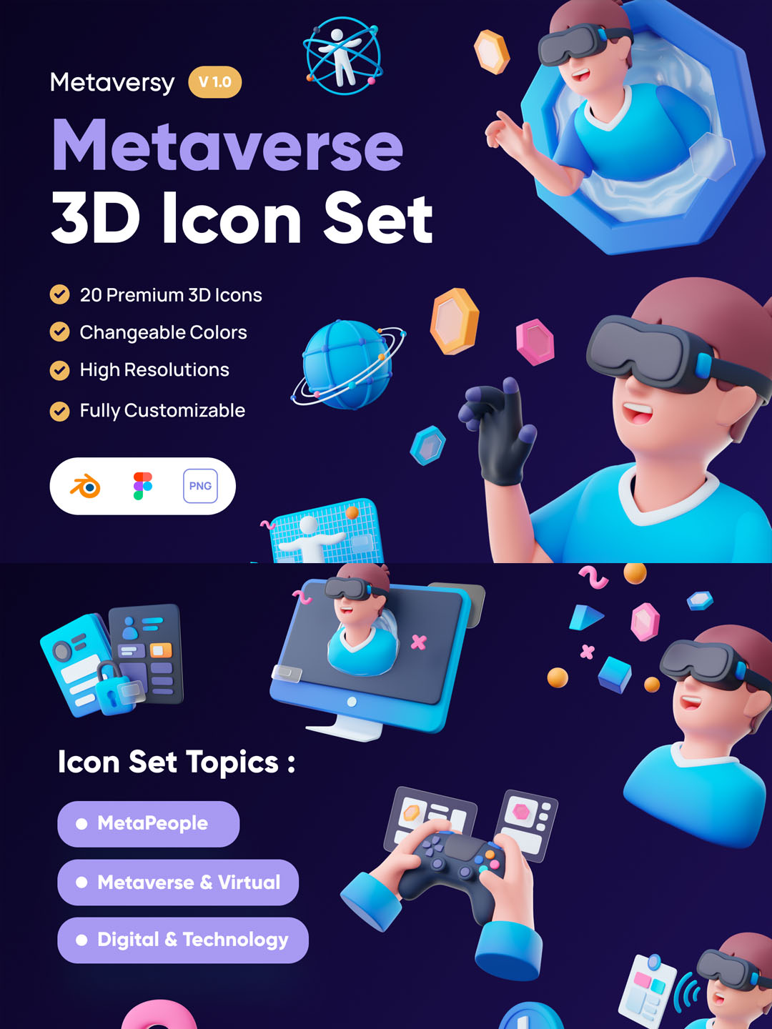 元宇宙主题使用 3D 图标让您的下一个产品和项目更加精彩。