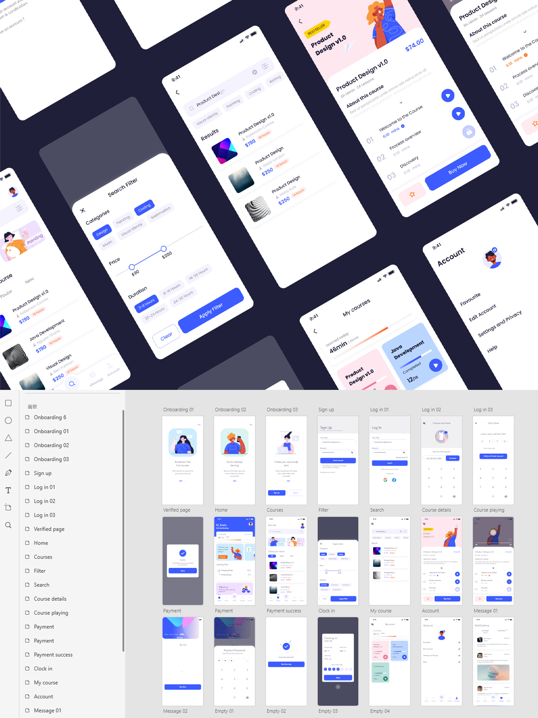 54页在线学习APP,UI设计sketch,xd,figma源文件