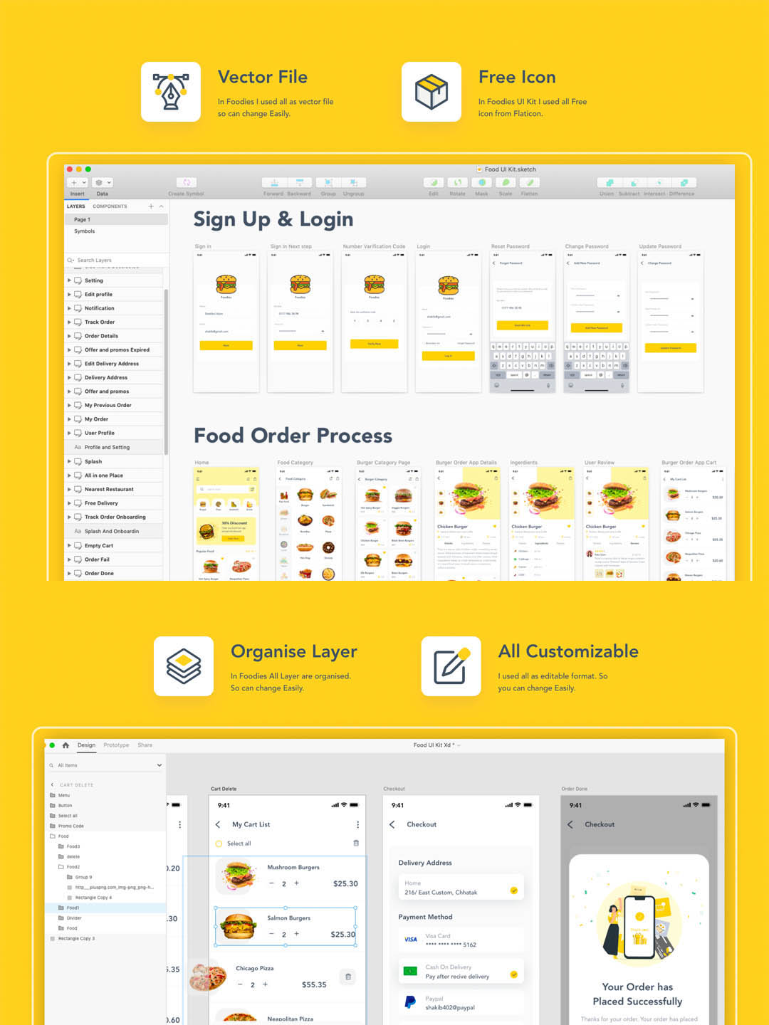 44页简约的插画风美食应用UI源文件sketch,xd,figma格式