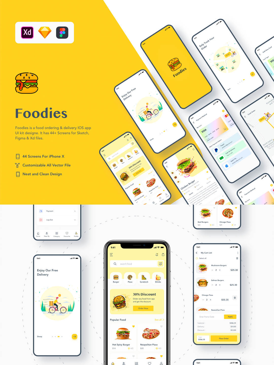 Foodies 是一款食品订购和配送 IOS 应用程序 UI 套件设计。它有 44 个以上的 Sketch、Figma 和 Xd 页面。现在是时候了,我们不能出门在外。因此,对于每一个美食爱好者来说,这都是出乎意料的,因为它也影响着每一个食品企业。这就是为什么它将有助于通过该应用程序增加您的业务。Foodies 是完美的 UI 工具包,可帮助您创建食品订购和食品配送应用程序。