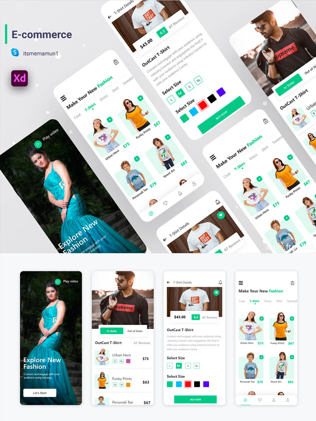 清新简约的免费电商UI模板,电商UI界面设计源文件,服装电商UI资源下载xd源文件下载